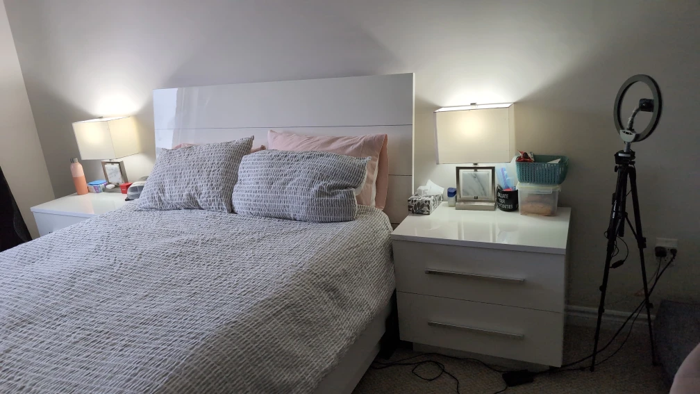 Selling a set of white bedroom furniture! This includes a queen bed, bed boxes for storage, chest, dresser and two matching nightstands. They're in great shape and would look lovely in any bedroom. Mattress not included.
