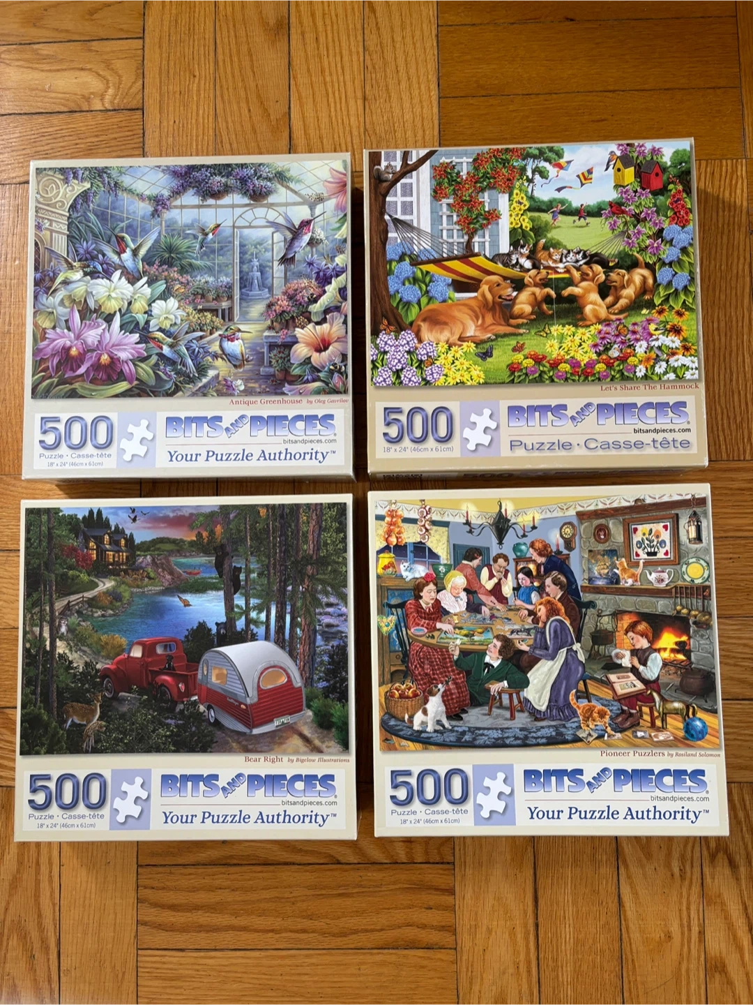 2 - Bits and Pieces 500 piece jigsaw puzzles are included. Each puzzle measures 18" x 24" (46cm x 61cm) when completed. These puzzles are great for a rainy day activity.