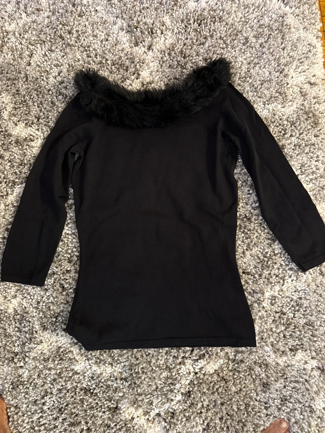 INC Black Faux Fur Trim Sweater