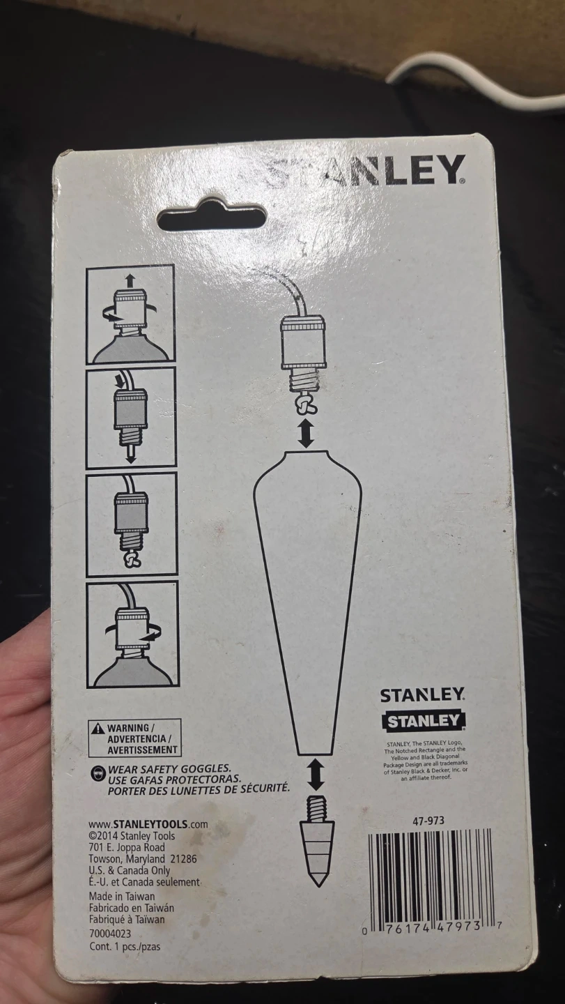 Buy & SellStanley 8oz Solid Brass Plumb BobStanley 8oz Solid Brass Plumb Bob$10This is a Stanley 8oz solid brass plumb bob. It features a replaceable hardened steel tip. Made in Taiwan.ConditionNewWHERE TO MEETCheck LocationView MapSELLER371554Harvest Hills171 review0 chats·0 favorites·3 viewsSEND CHAT TO SELLERHi 371554! I’m interested in your listing.Hi 371554! I’m interested in your listing.Get the Karrot app to chatSign In to chat