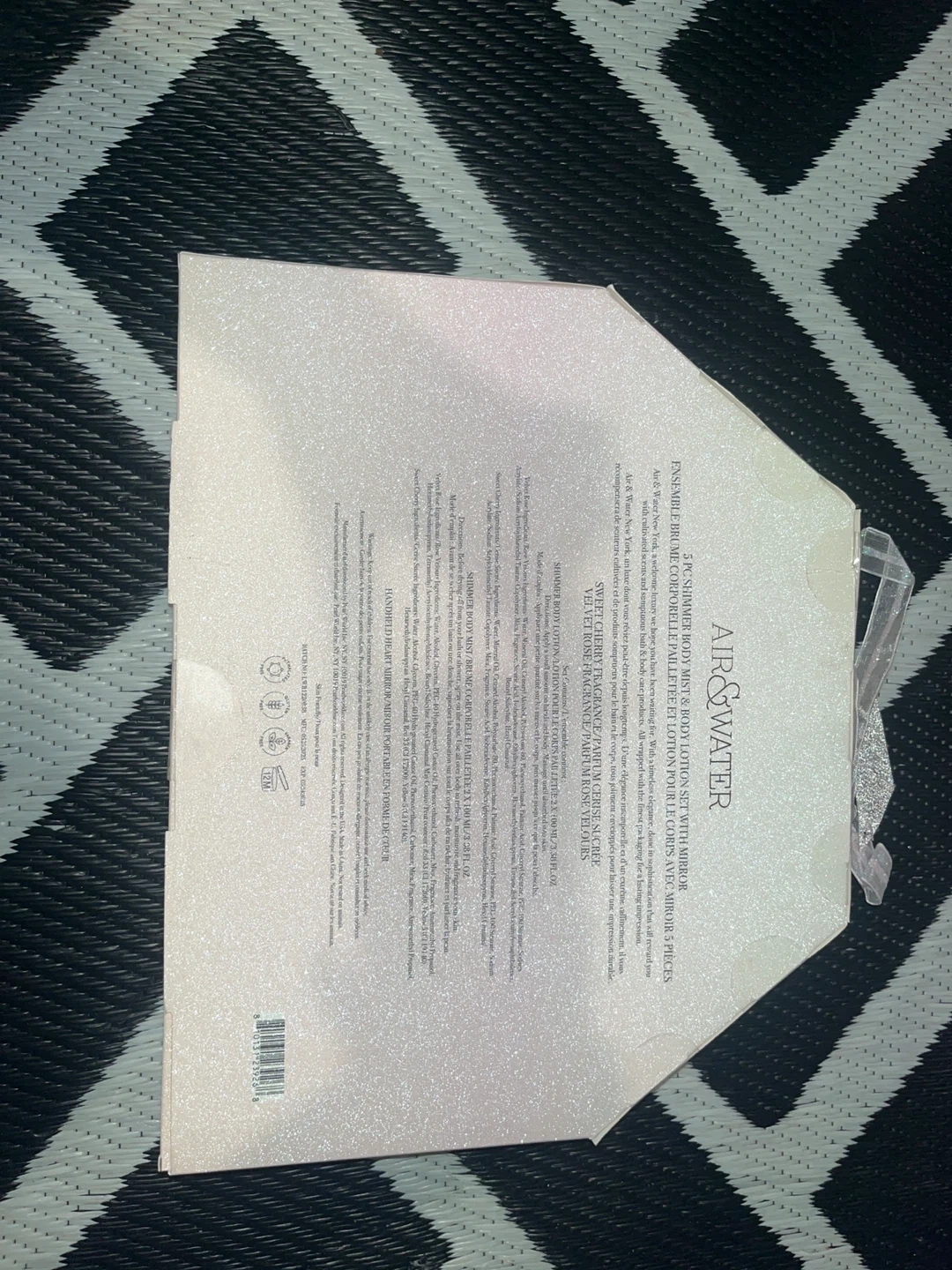 This AIR & WATER gift set includes a perfume, body lotion, and a matching hair brush. The perfume has a sweet cherry scent and comes in a 50ml bottle. The body lotion is also scented and comes in a 100ml tube. It's a great gift for anyone who loves sweet fragrances!