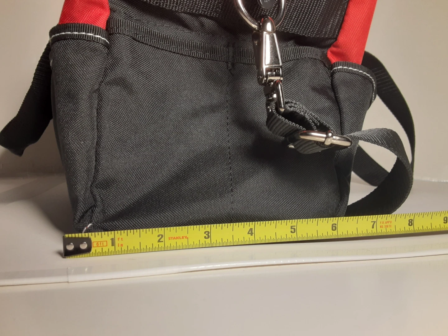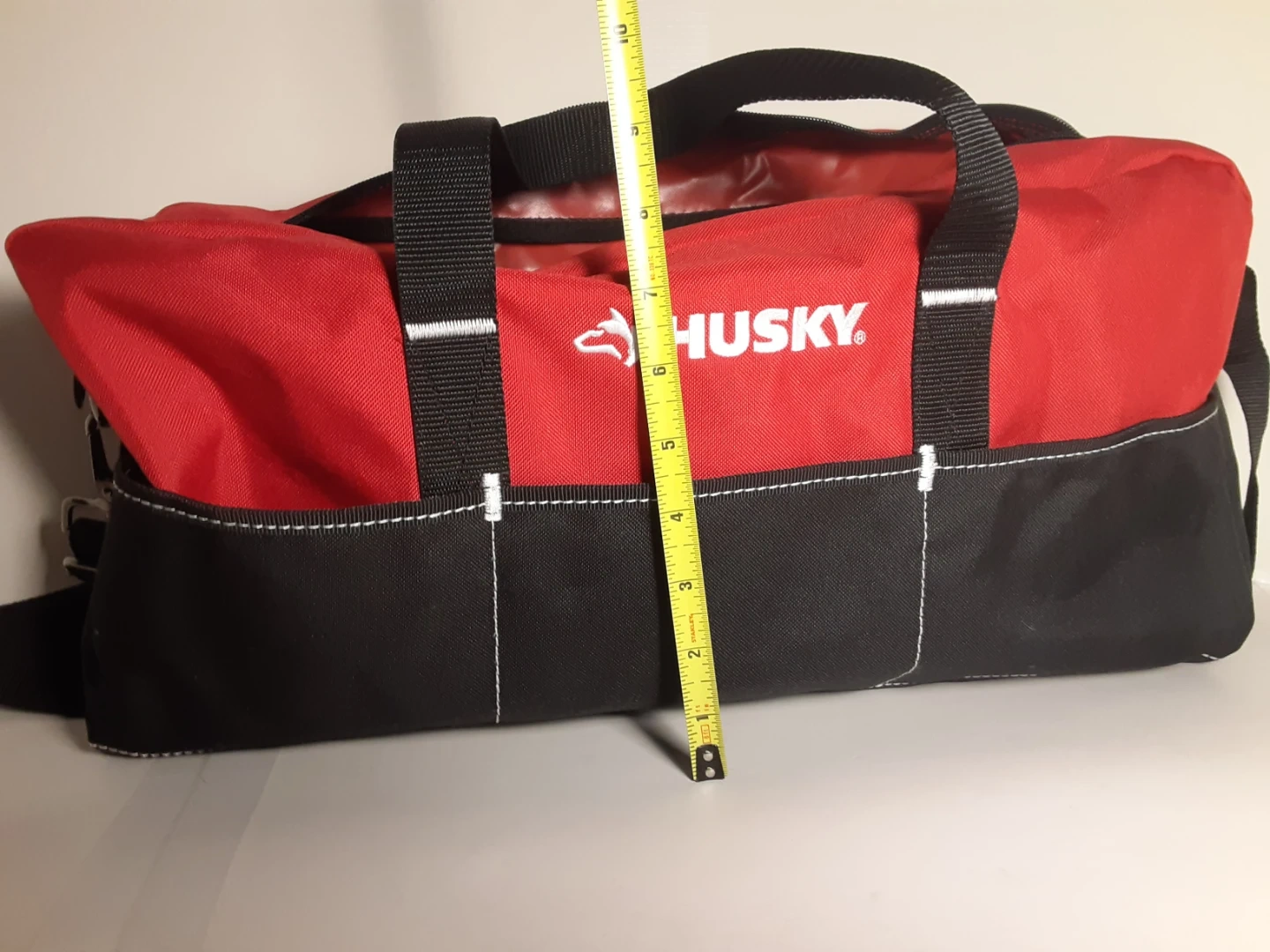 Selling a Husky tool bag in red and black. It's in excellent shape, used very lightly and ready to carry your tools! Features a shoulder strap for easy carrying and many small external side pockets and two internal small/medium side pockets for organization.