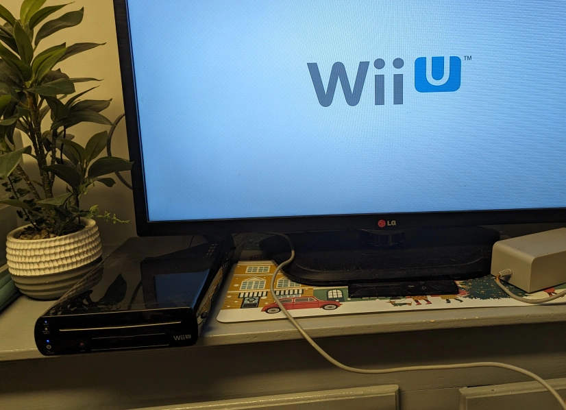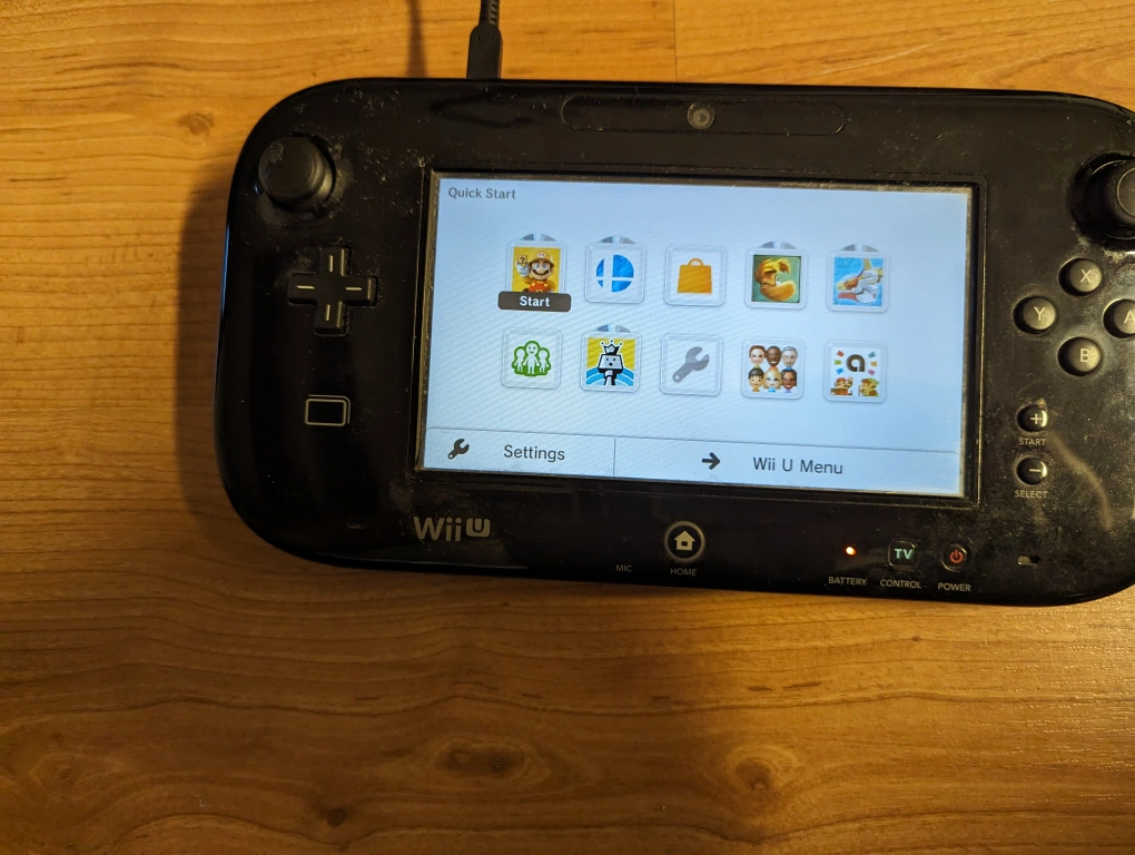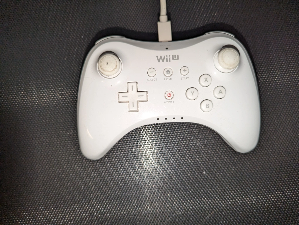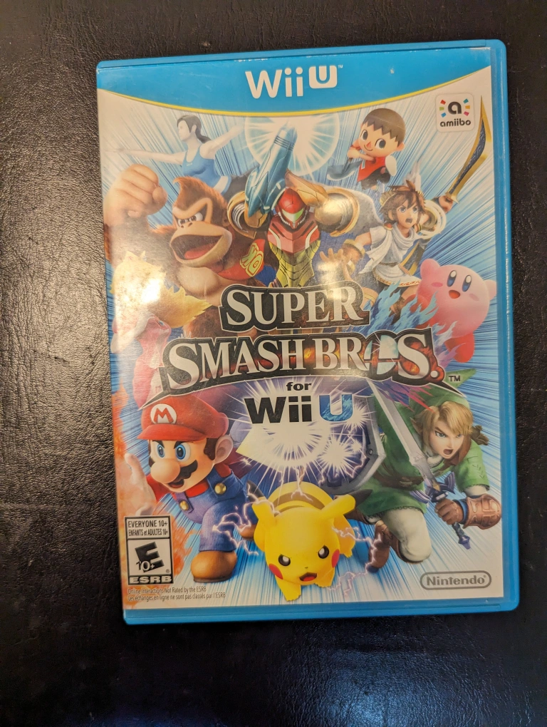 Wii U console with game, includes all cords and a white Wii U gamepad. The system has been well cared for and comes with a copy of Super Smash Bros. and a Pro Controller.