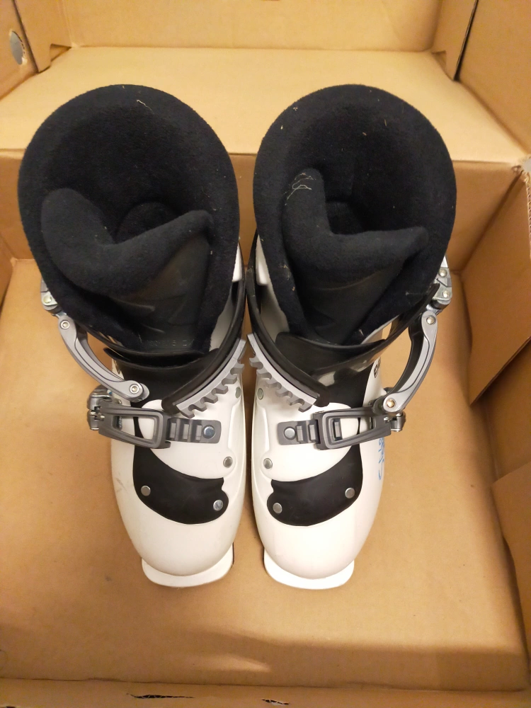 Selling a pair of Salomon T2 RT Girly ski boots in size 19! They come in a light green translucent and white colour. The original price was $110.00. The box is included