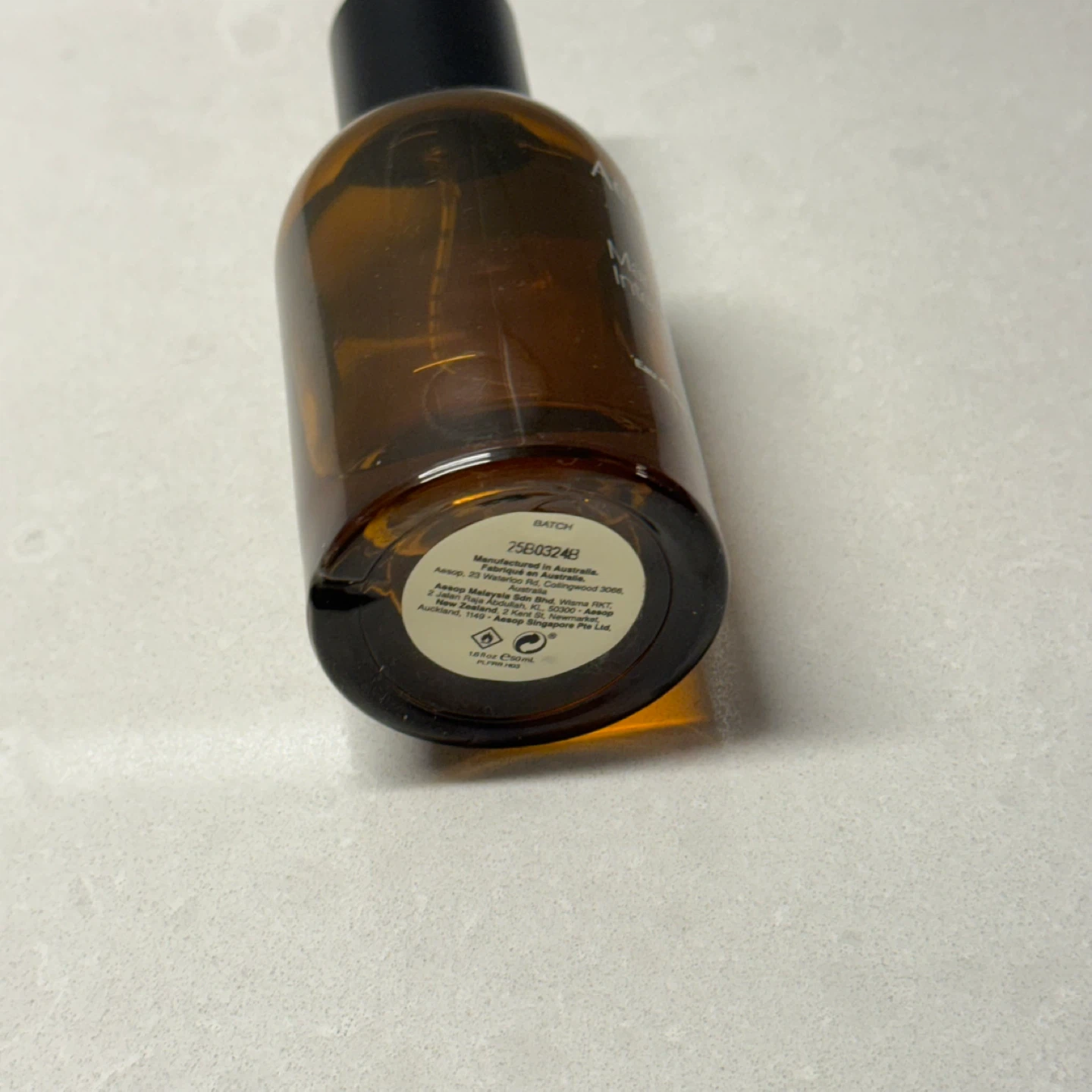 Aesop Marrakech Intense Eau de Parfum. Amber glass bottle with black cap. Includes original box. 1.6 fl oz / 50 mL. About 35ml left
