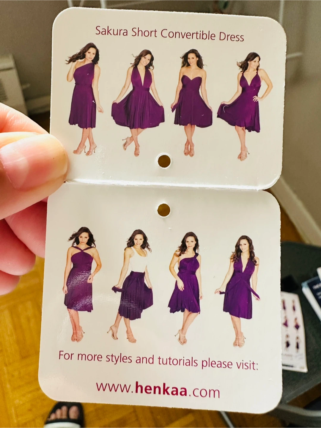 This is a lovely Henkaa Sakura Short Convertible Dress in a beautiful purple colour. It's in great condition and ready for a new home. The dress is versatile and can be styled in many different ways, as shown on the tag!