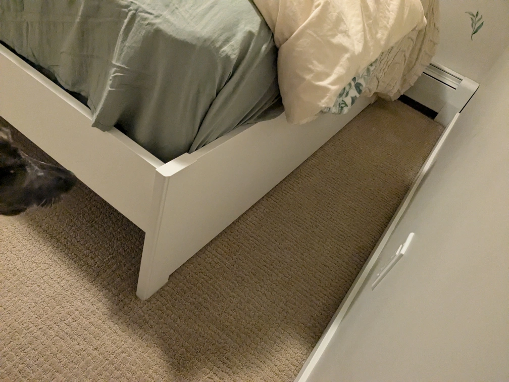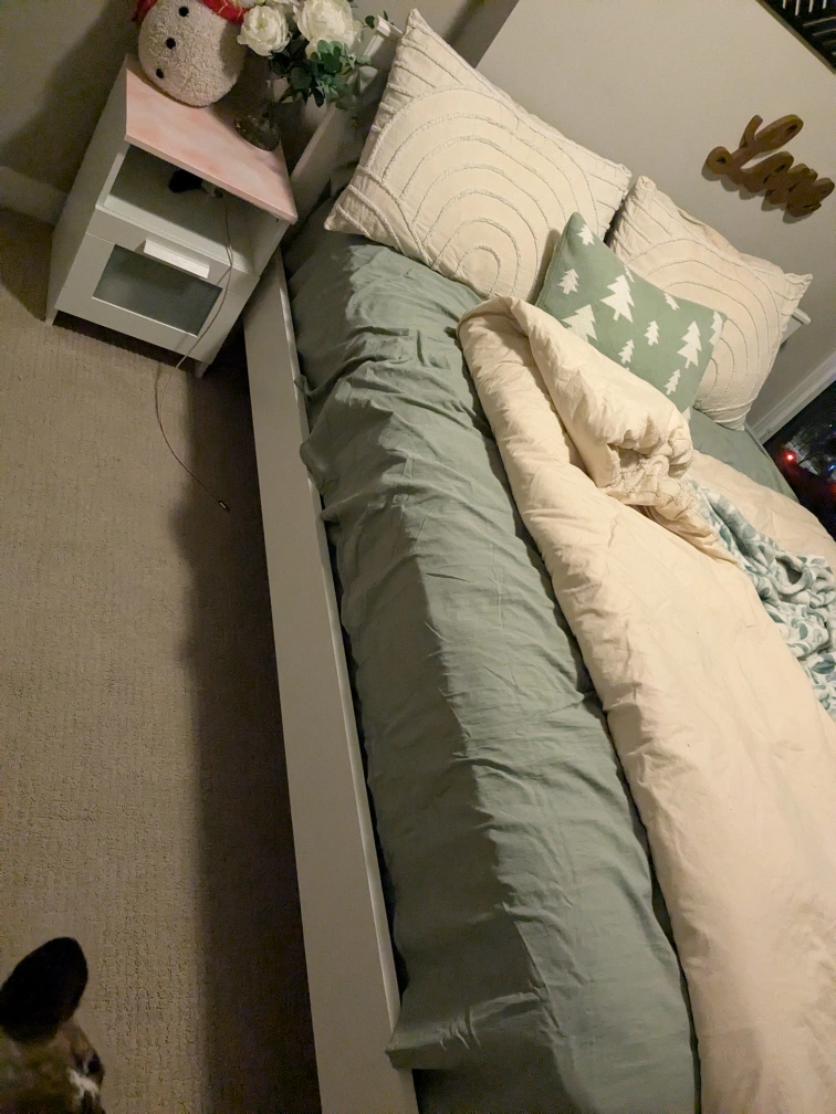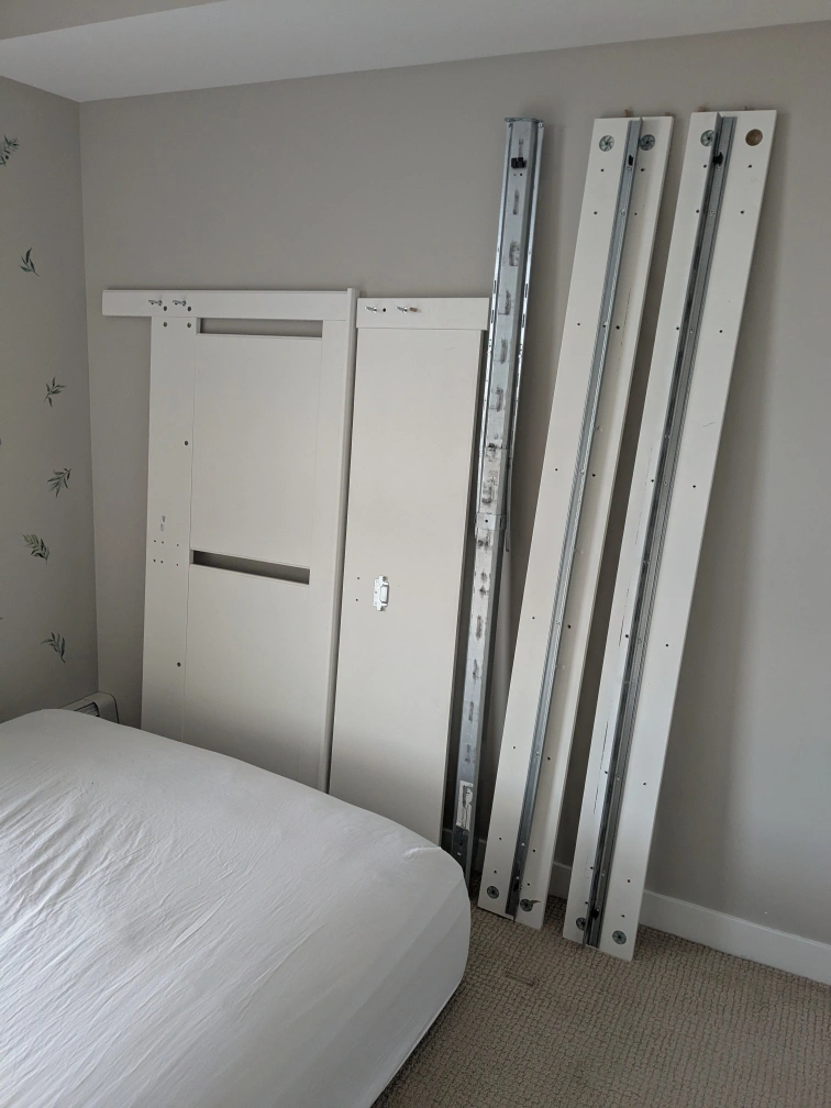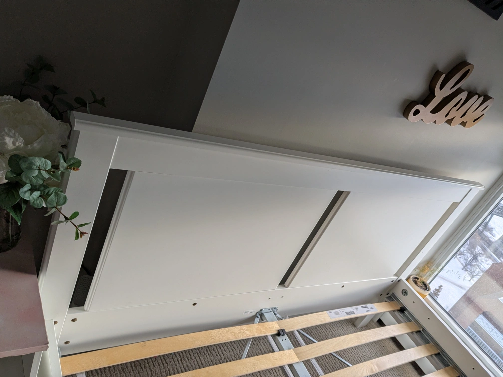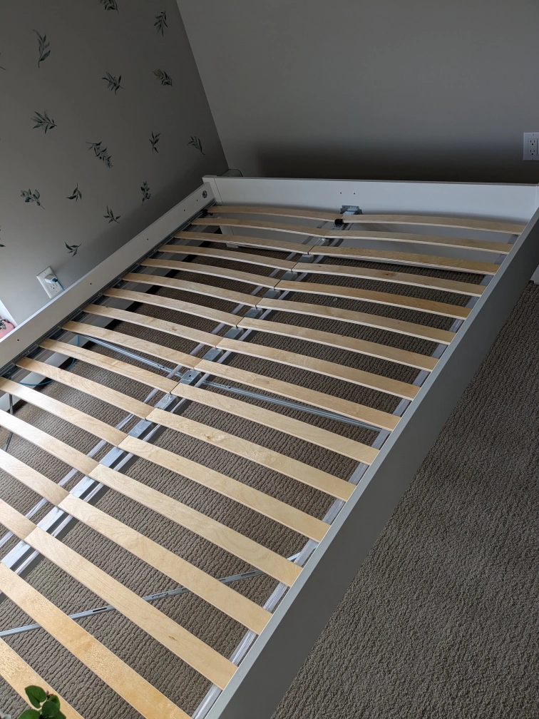 We decided to switch for a king so we need this gone as soon as possible. Bed frame slats and all bars are from Ikea. Spent over $300 alone