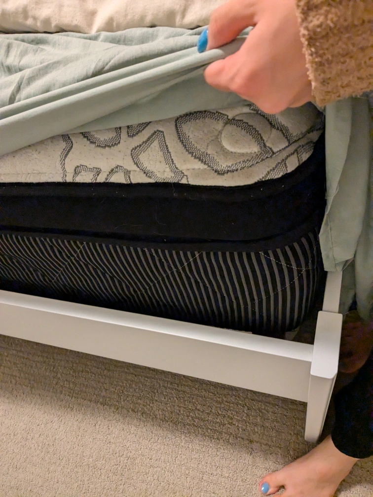 The mattress is from sleep country and I spent $1,200 on it. It's a 12-in medium firm pillow top mattress.
