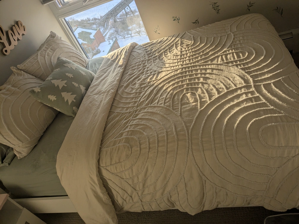 can include a free set of queen sheets it's 2000 thread count it's super comfy I won't need it since we upgraded