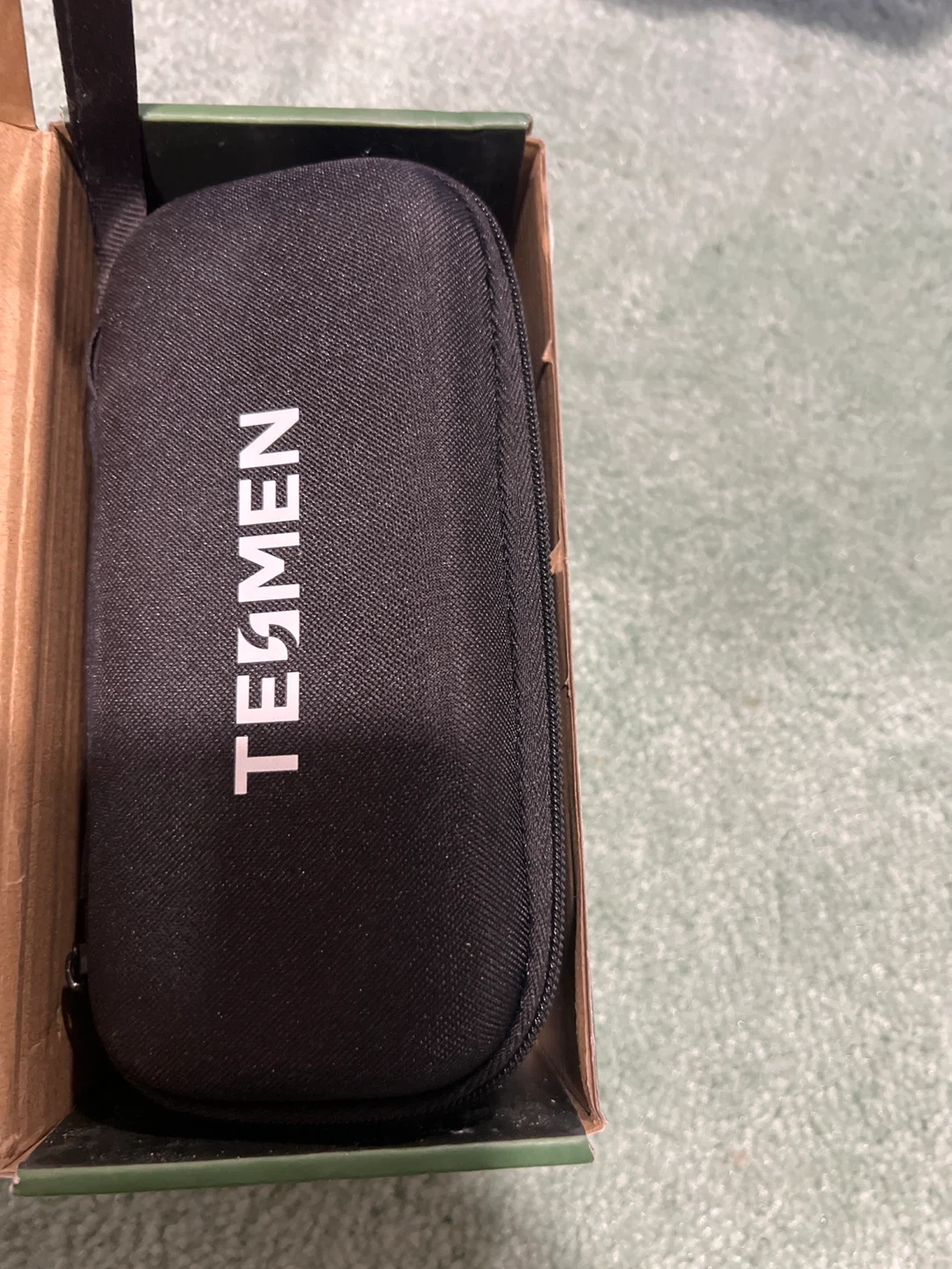 This is a TESMEN HOUND-200 EMF Meter. It comes with a carrying case for protection and portability. This device helps measure electromagnetic fields.