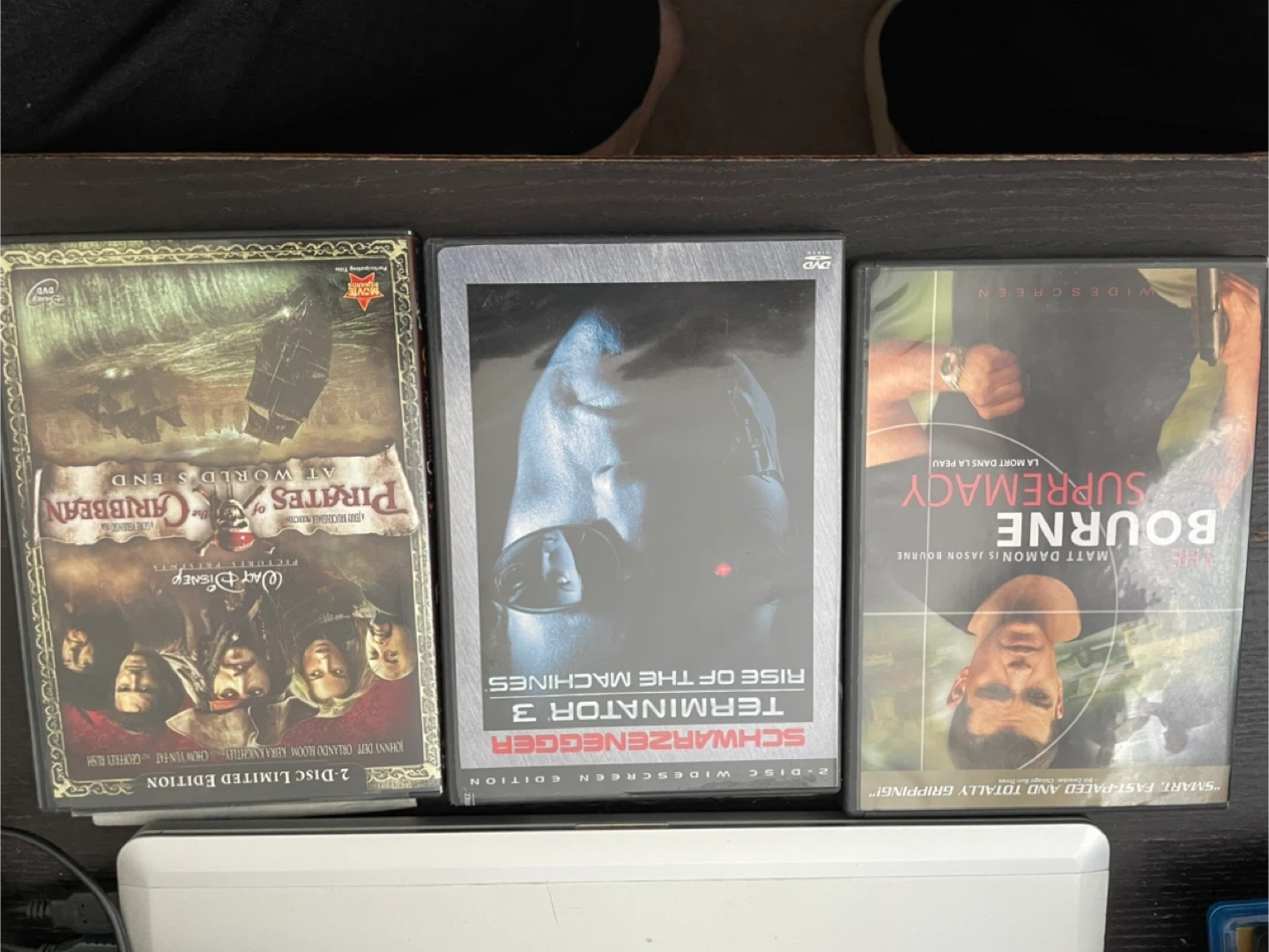 This listing includes The Matrix Trilogy on DVD: The Matrix, The Matrix Reloaded, and The Matrix Revolutions. Also included are Pirates of the Caribbean: At World's End, Terminator 3: Rise of the Machines, and The Bourne Supremacy. All discs are widescreen editions.