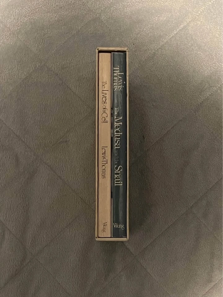 Nice boxed set featuring two classic science essays by Lewis Thomas: The Lives of a Cell and The Medusa and the Snail. These books explore biology, medicine, and life in a thoughtful and easy-to-read way. A great set for science lovers, students, or collectors of vintage science writing. Good overall condition. Pages are clean and intact. Box shows minor wear from storage (see photos). Perfect for anyone interested in biology, science writing, or vintage book collections. Pickup in Richmond.