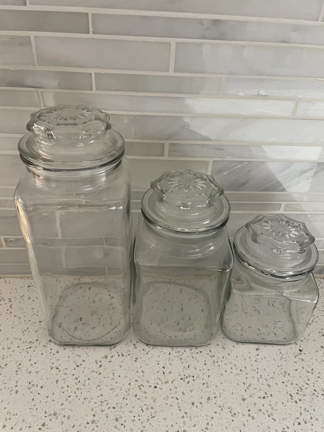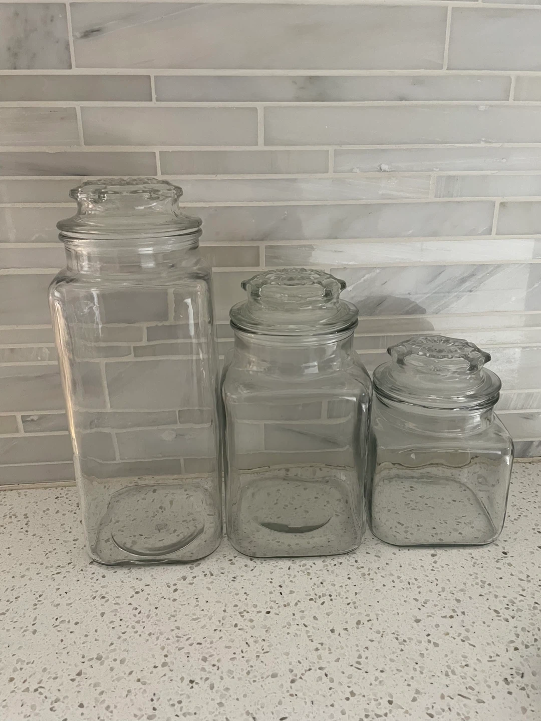 Vintage Anchor Hocking Square Jars with Starbust Lids - Set of 3