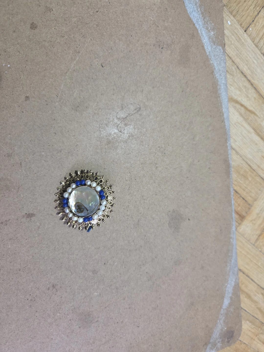 Vintage Brooch with Mother of Pearl and Blue Beads