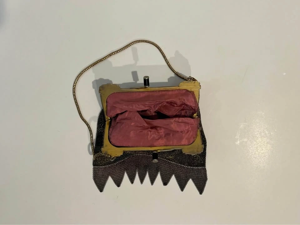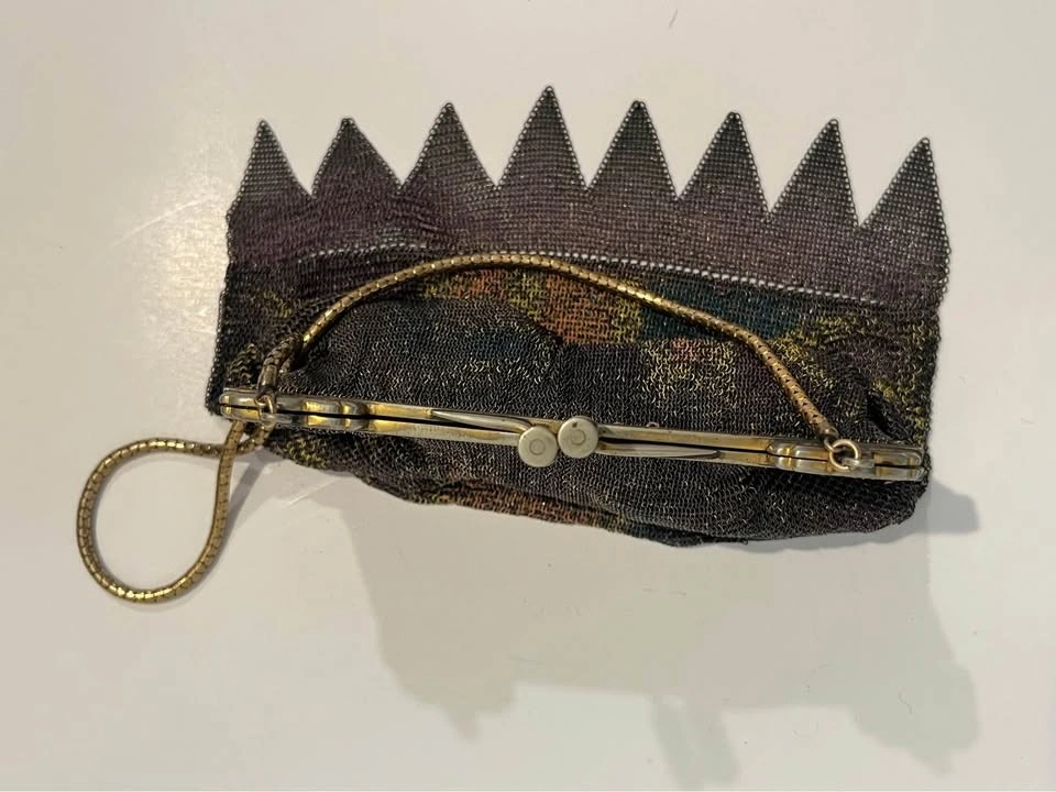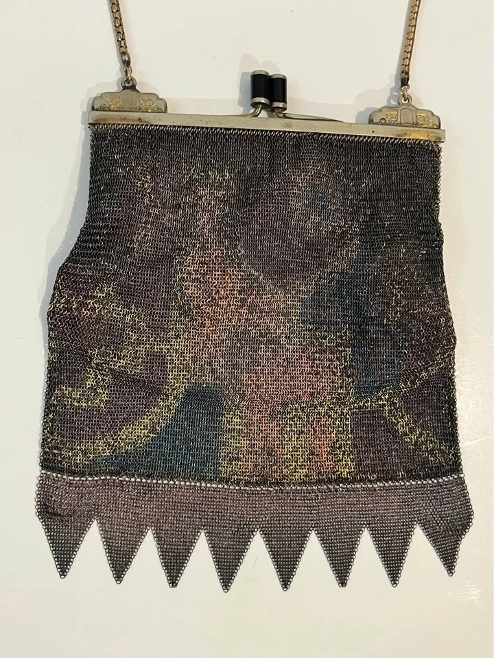 Antique Metal Mesh Flapper Purse Snap Clasp Clutch Painted Mesh