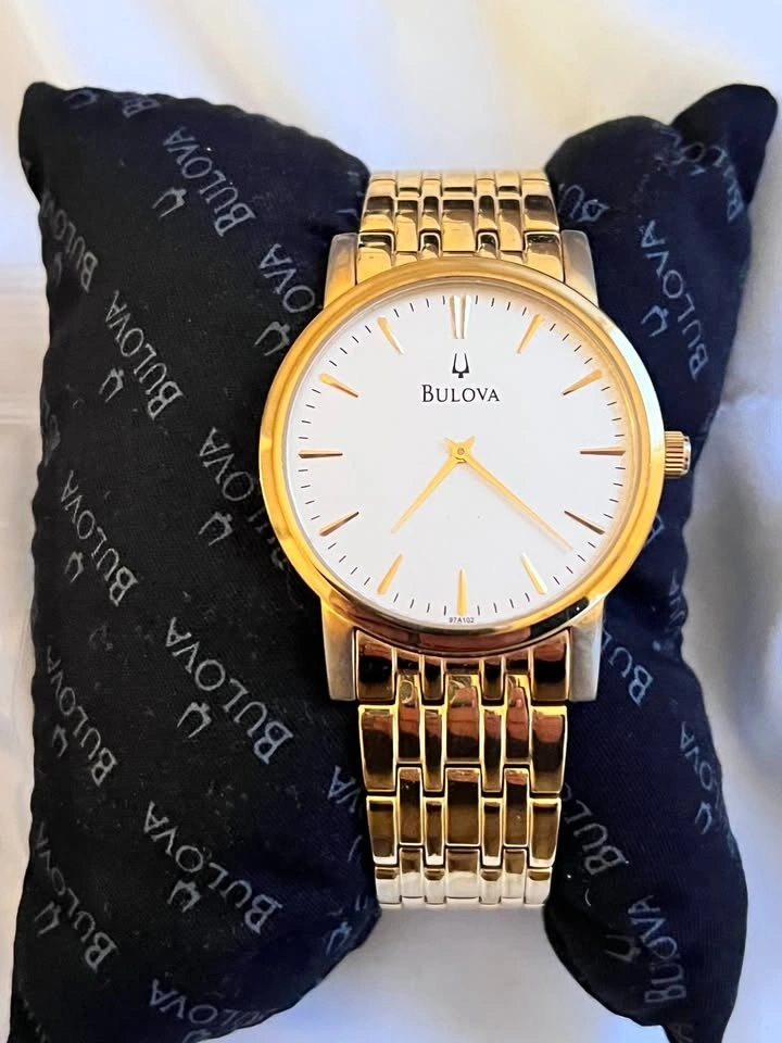 Buy & SellUsed Bulova Gold WatchUsed Bulova Gold Watch$240This is a great watch, I've had it since I started my collection. It's 10k gold brushed/gold tone. Asking $240 or best offer.WHERE TO MEETCheck LocationView MapSELLERDanWaterfront Communities100 reviews0 chats·1 favorites·31 viewsSEND CHAT TO SELLERHi Dan! I’m interested in your listing.Hi Dan! I’m interested in your listing.Get the Karrot app to chatSign In to chat