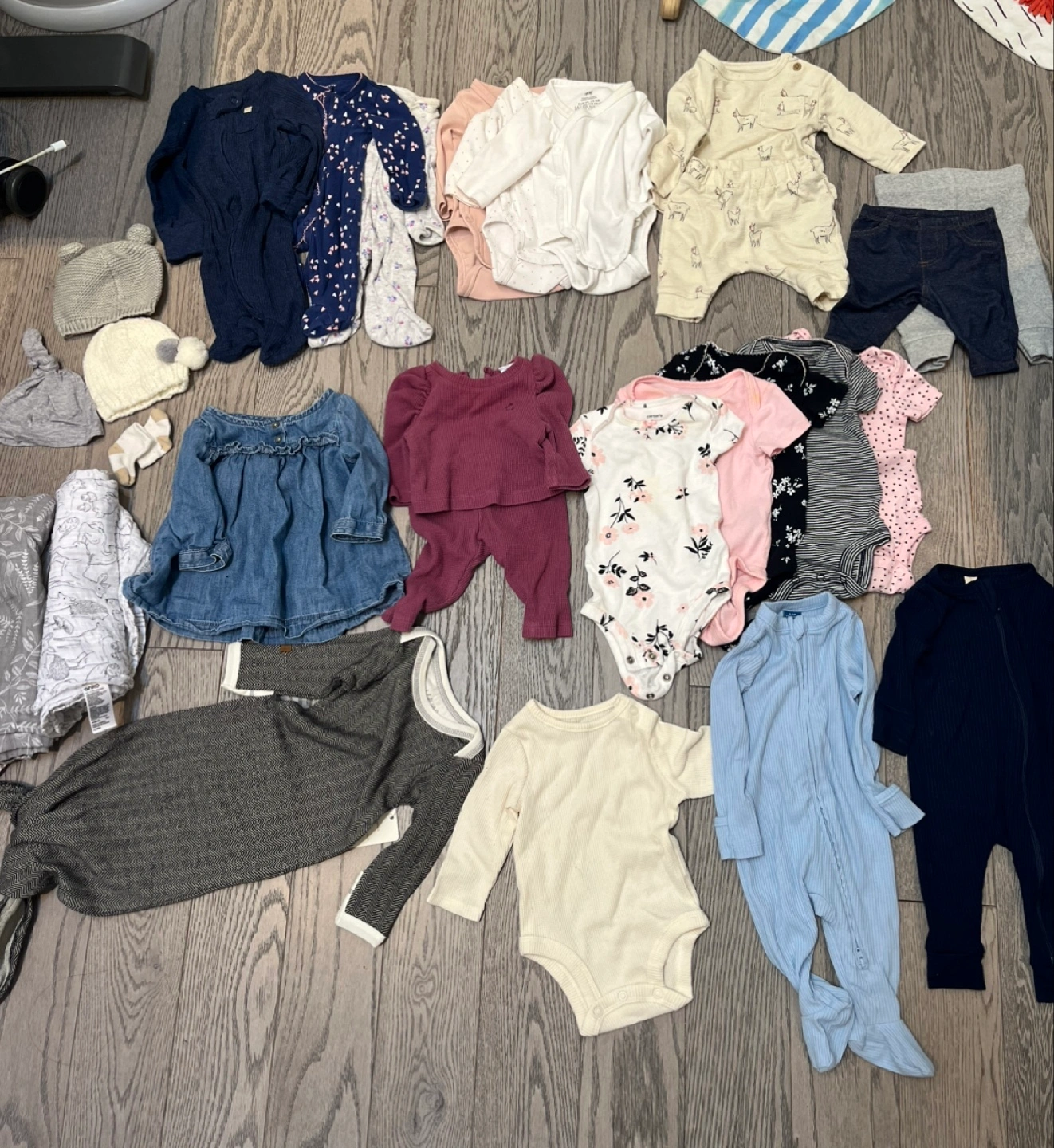 - H&M x3 newborn long sleeve onesie (fits larger than other brands) shown in the top row of the second pic