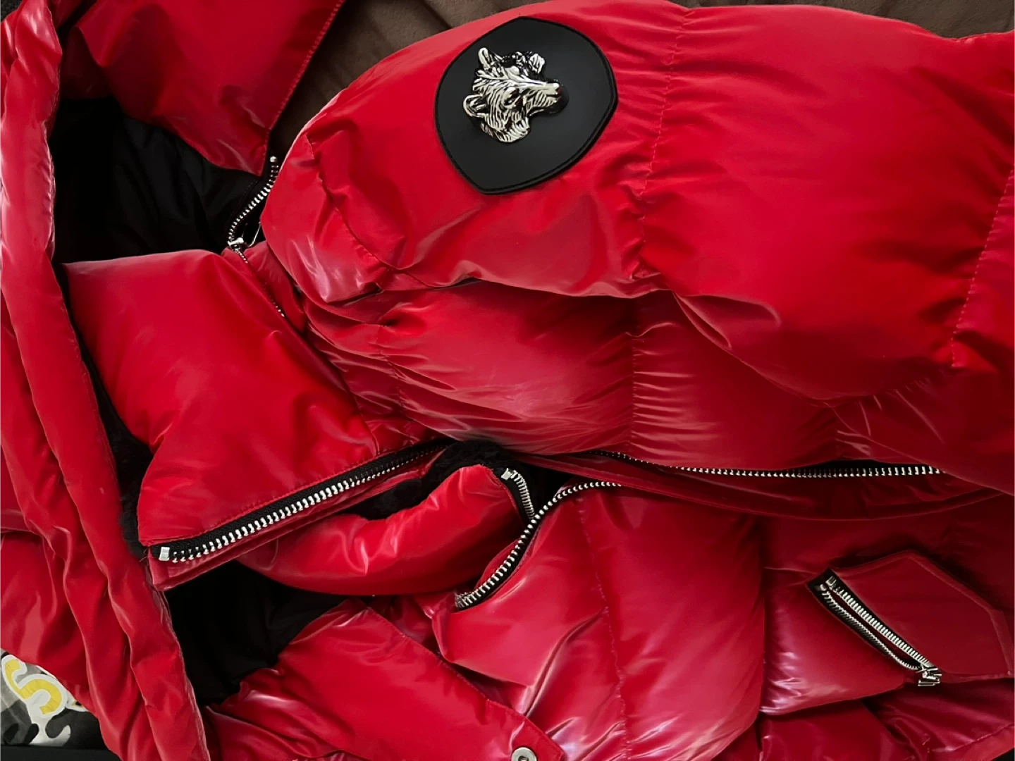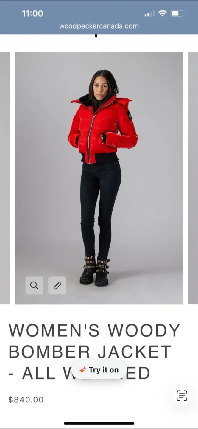 Was used for a music video shoot once & never used again.This is a WoodpeckerBomber Jacket in red. It's a women's bomber jacket designed for warmth and style.This jacket is made with quality materials and features the signature woodpecker logo. It's a great piece for colder weather!