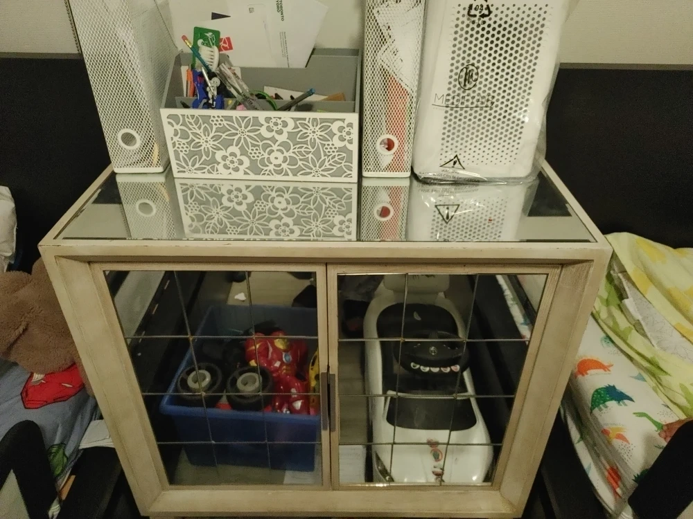 Selling a mirrored door cabinet, perfect for extra storage! It's in great shape and ready for a new home