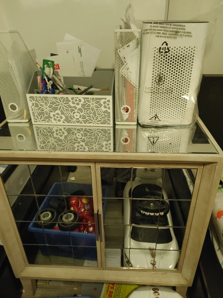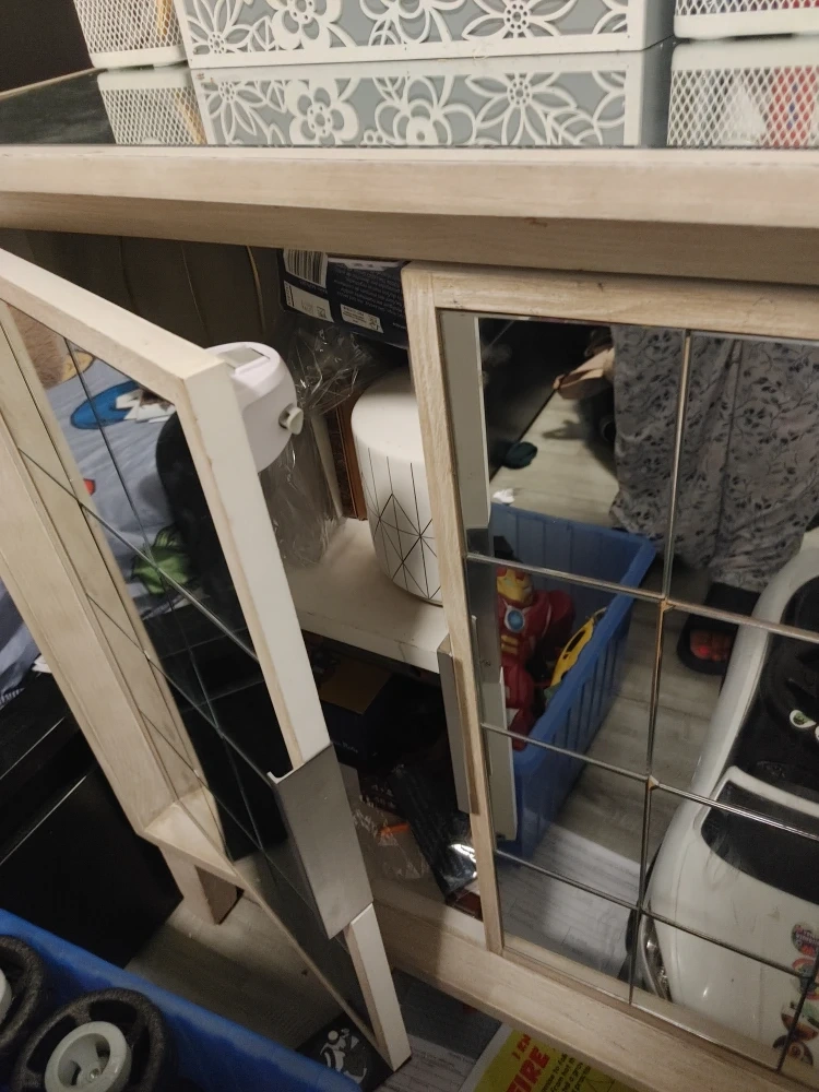 Selling a mirrored door cabinet, perfect for extra storage! It's in great shape and ready for a new home