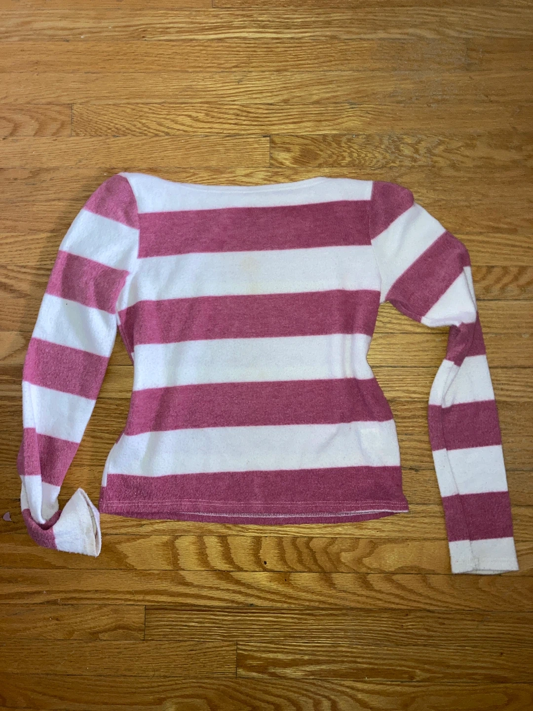 y2k off the shoulder striped pink and white top size xs the back tag cut off but never worn, offer any prices