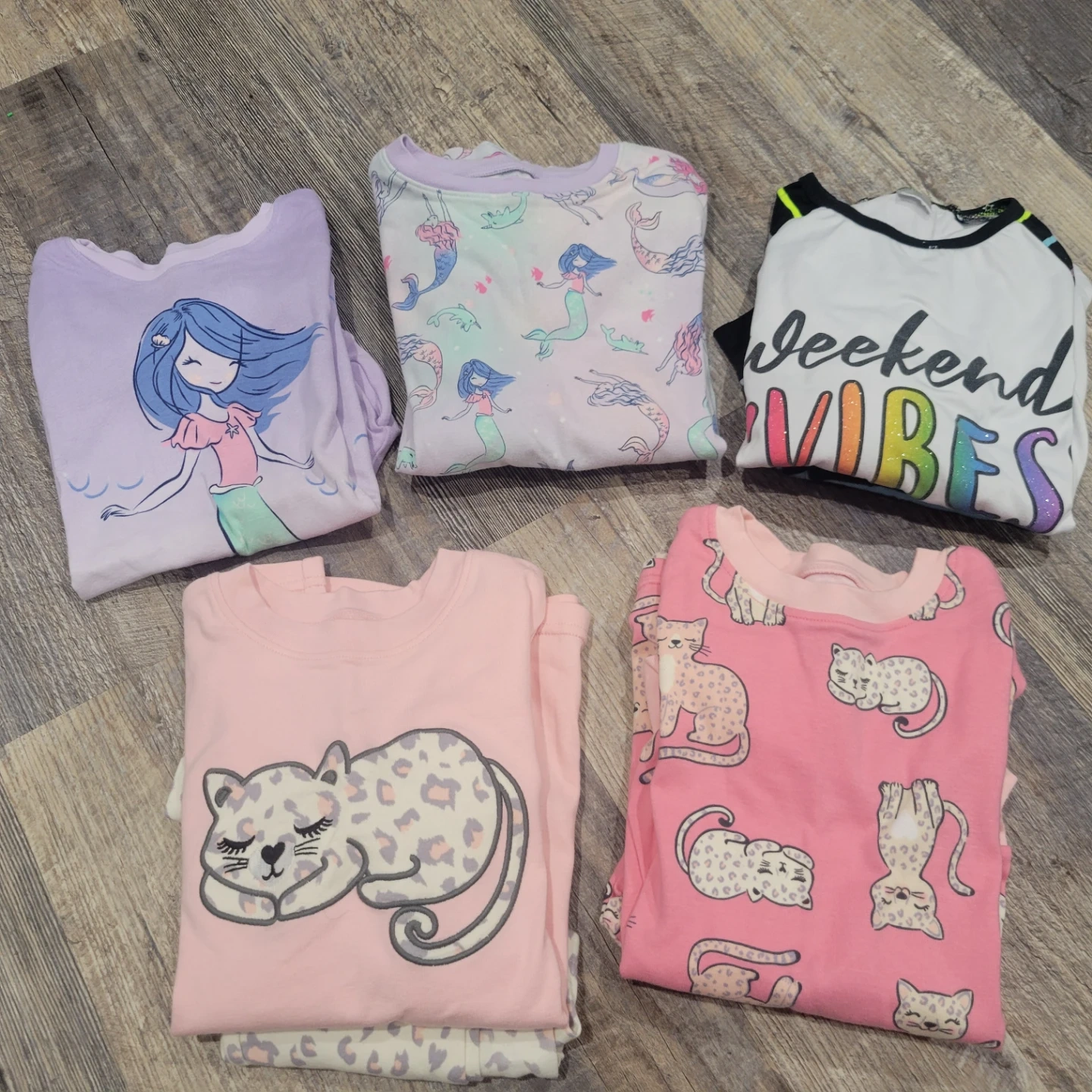 Selling a bundle of girls' pajama sets in size 8. These sets are super cute and comfy. 2 sets are short sleeve and shorts. 3 sets are long sleeves and pants.You'll find fun designs like mermaids and cats. Pick up brampton or can meet in Georgetown.