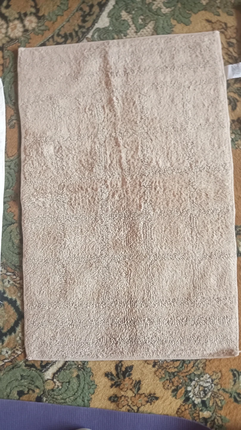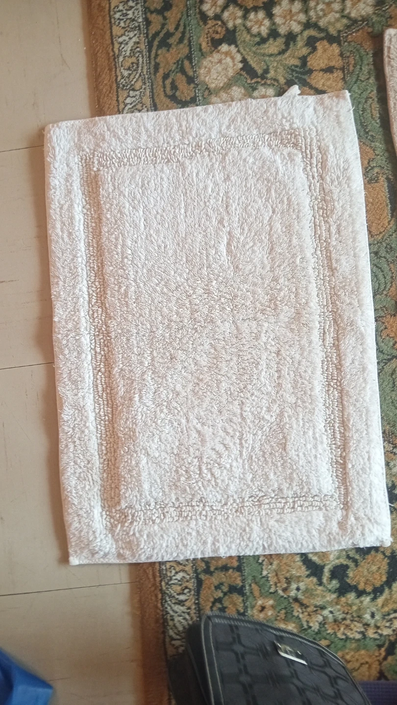 Three plush bath mats, one in white and one in beige and a darker beigh. They're soft and absorbent for your bathroom floor. These mats measure approximately .