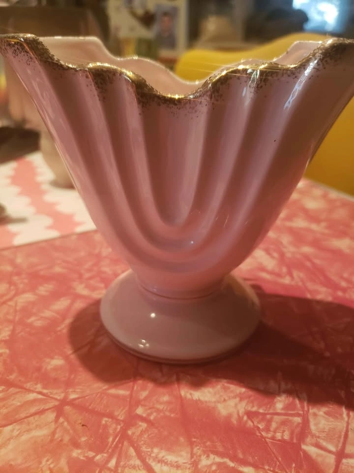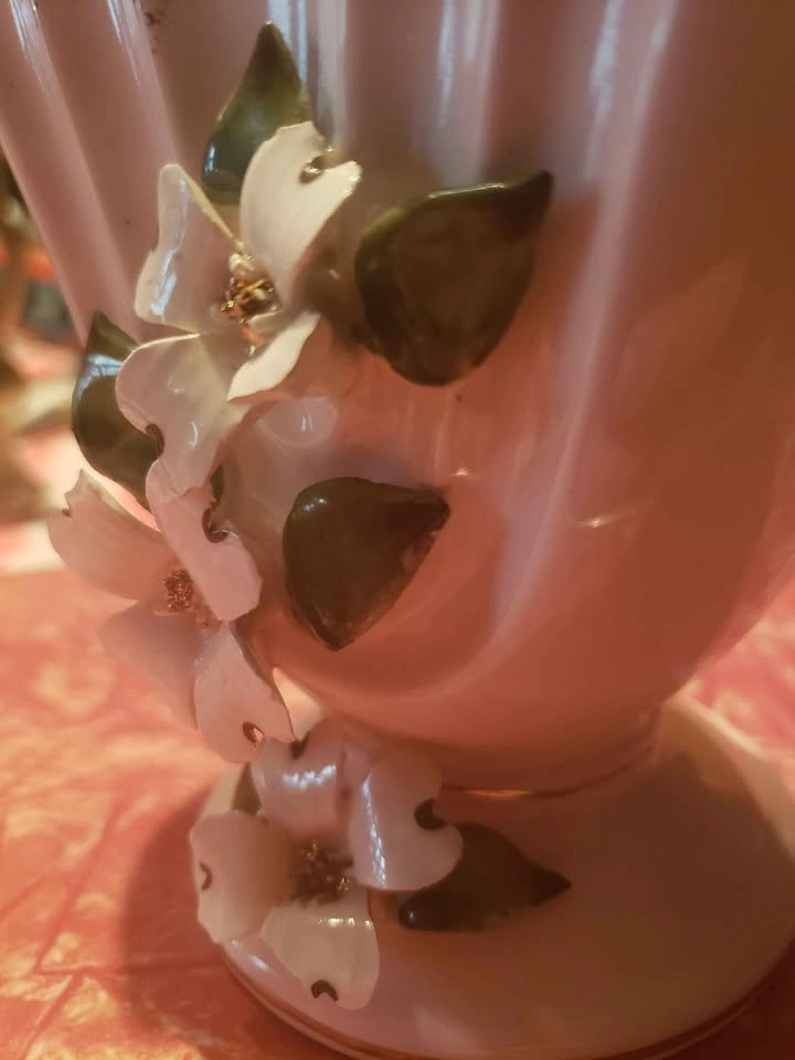 40s Style Pink Gilded Dogwood Porcelain Vase