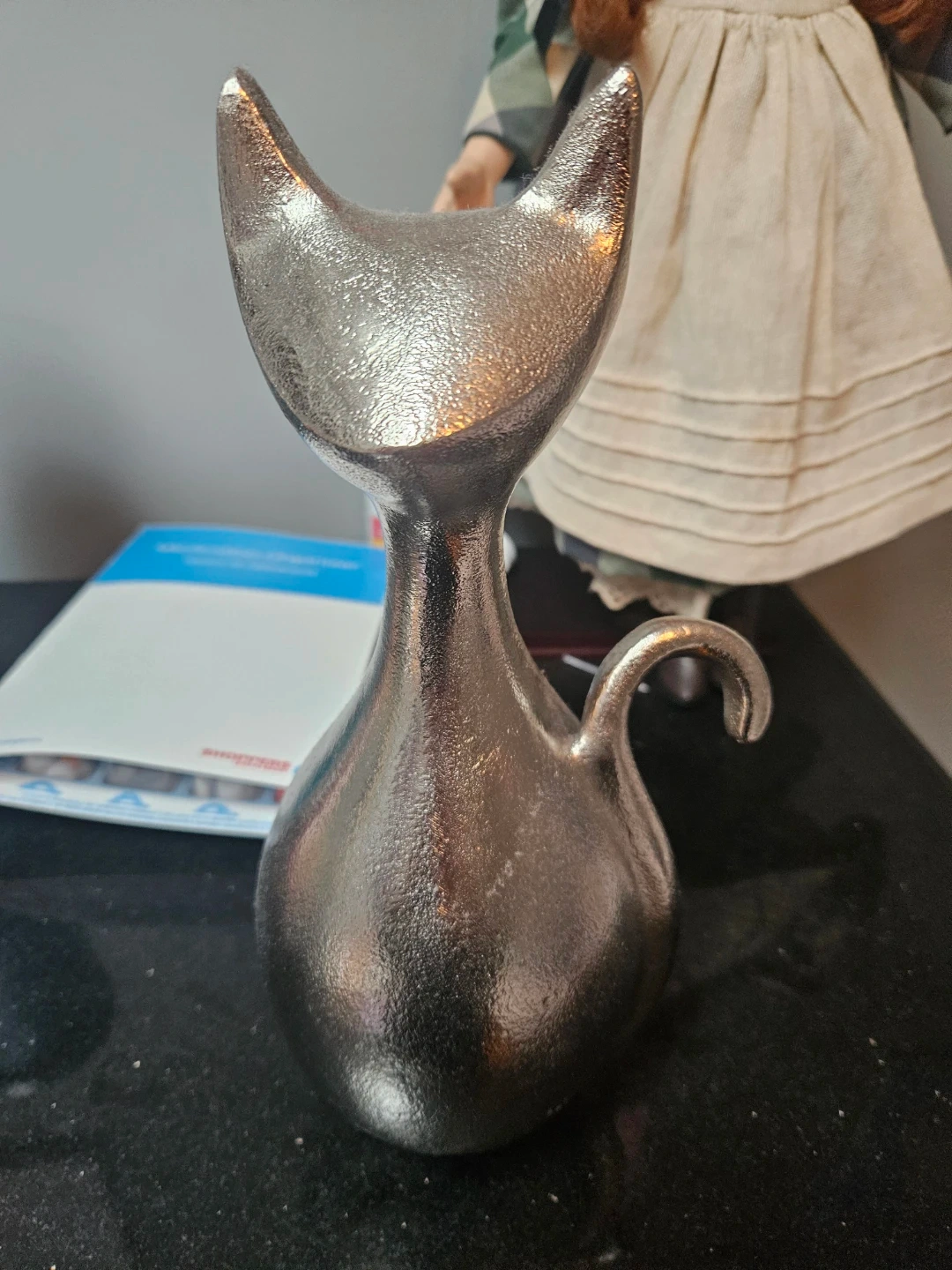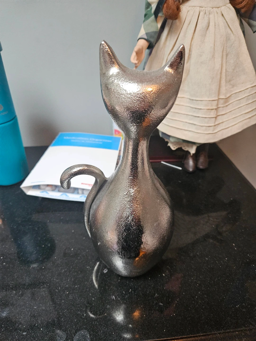 Buy & SellSilver Cat FigurineSilver Cat Figurine$12A cute silver-coloured cat figurine. It's made of metal and has a sleek, modern design. Its curved tail adds a whimsical touch.ConditionNewWHERE TO MEETCheck LocationView MapSELLERkathleenKFC100 reviews0 chats·0 favorites·4 viewsSEND CHAT TO SELLERHi kathleen! I’m interested in your listing.Hi kathleen! I’m interested in your listing.Get the Karrot app to chatSign In to chat