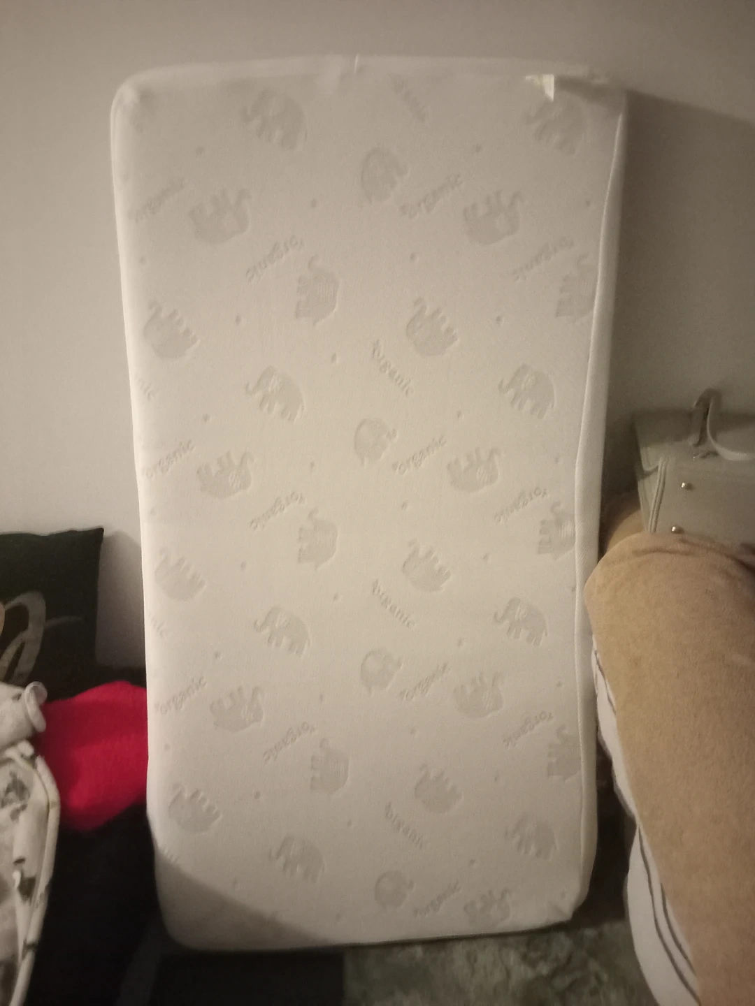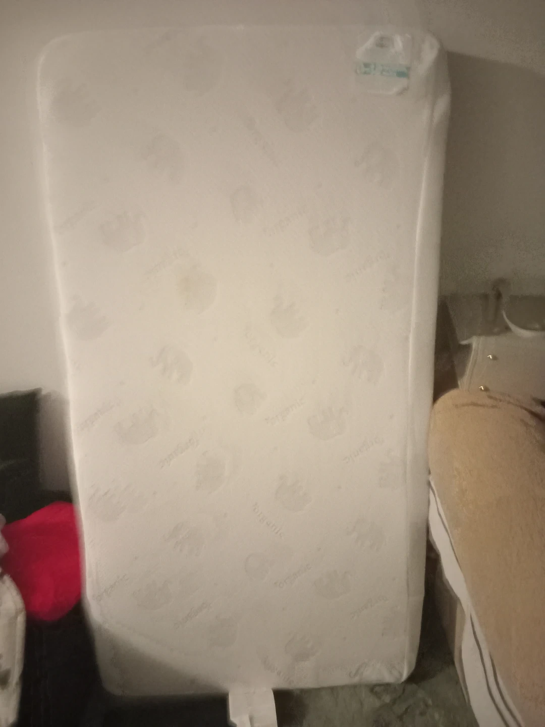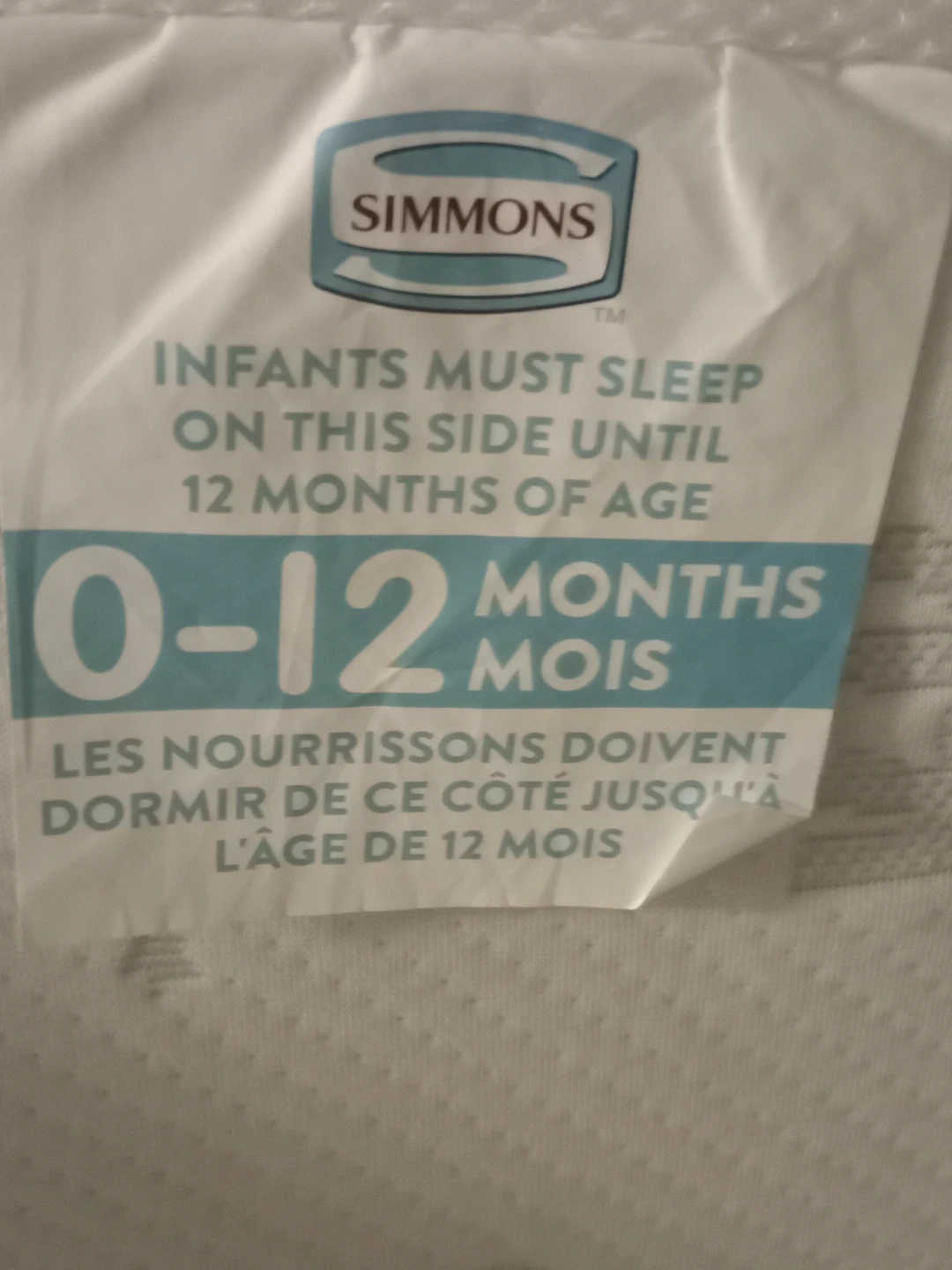 Selling a Simmons Kids baby mattress, designed for infants aged 0-12 months. The mattress has an organic design and is in great condition. It's designed to ensure infants sleep on the correct side up to 12 months of age. Perfect for your little one's crib! Multi-use for newborns to use on opposite side.