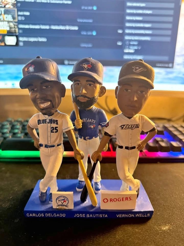 Buy & SellToronto Blue Jays 40th Season BobbleheadToronto Blue Jays 40th Season Bobblehead$40Features Carlos Delgado, Jose Bautista, and Vernon Wells from the 40th season.WHERE TO MEETCheck LocationView MapSELLERRyan JarvisWilliamsburg250 reviews0 chats·0 favorites·8 viewsSEND CHAT TO SELLERHi Ryan Jarvis! I’m interested in your listing.Hi Ryan Jarvis! I’m interested in your listing.Get the Karrot app to chatSign In to chat