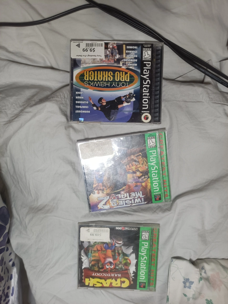 selling ps1 console with controller and 3 official games crash bandicoot. twisted metal 2 and tony hawk pro skater comes with display cable and memory card fully working in good condition
