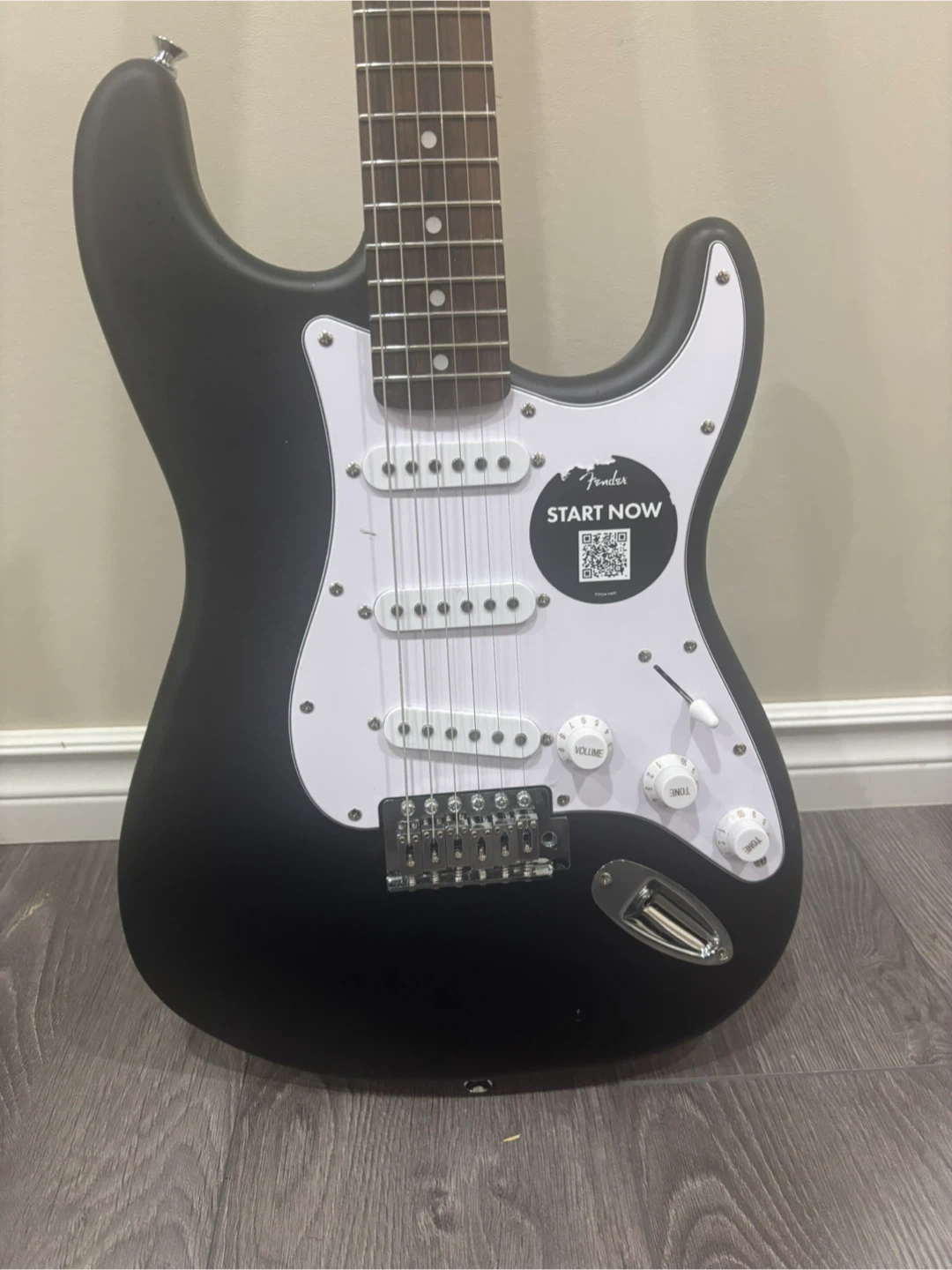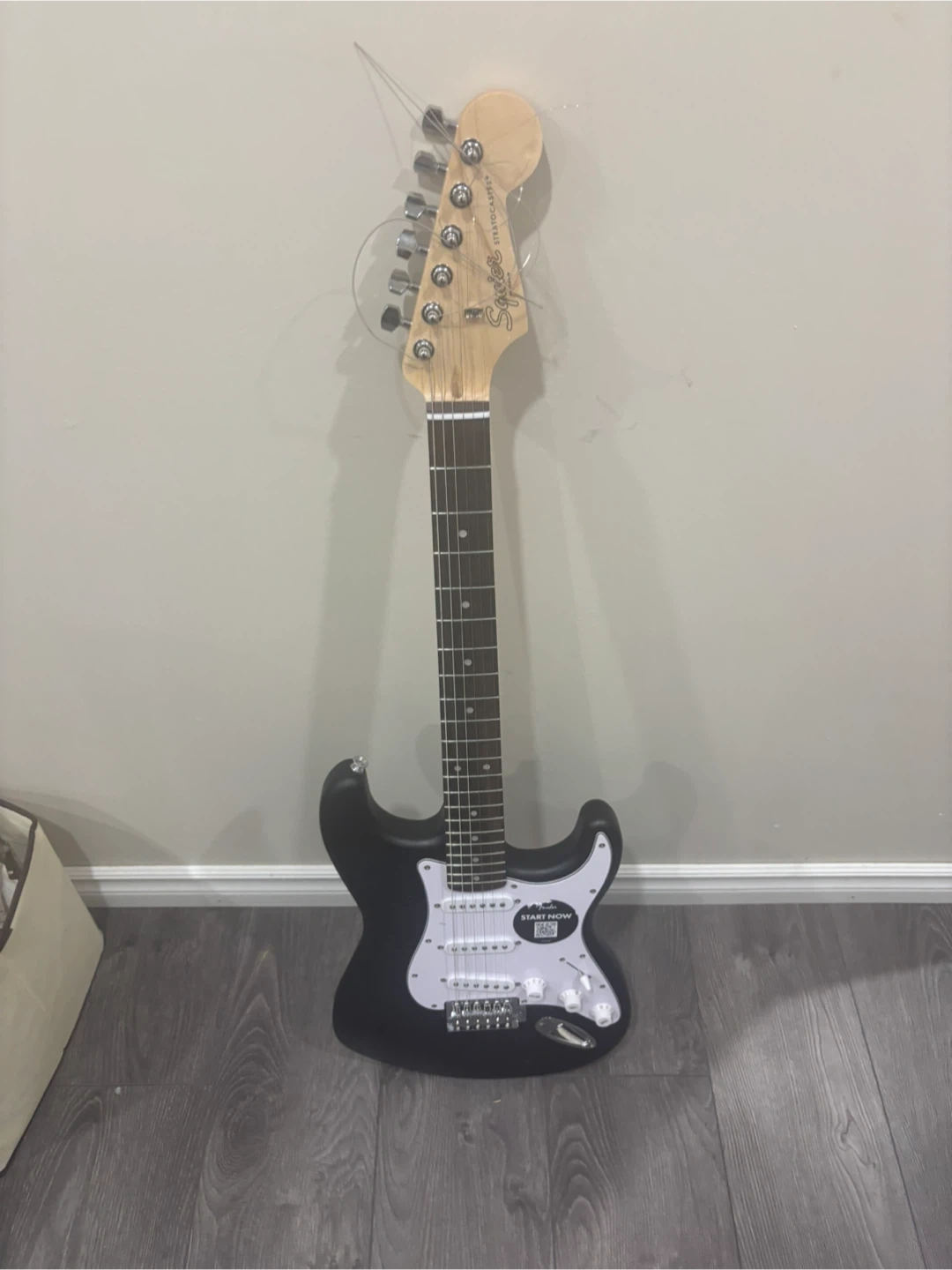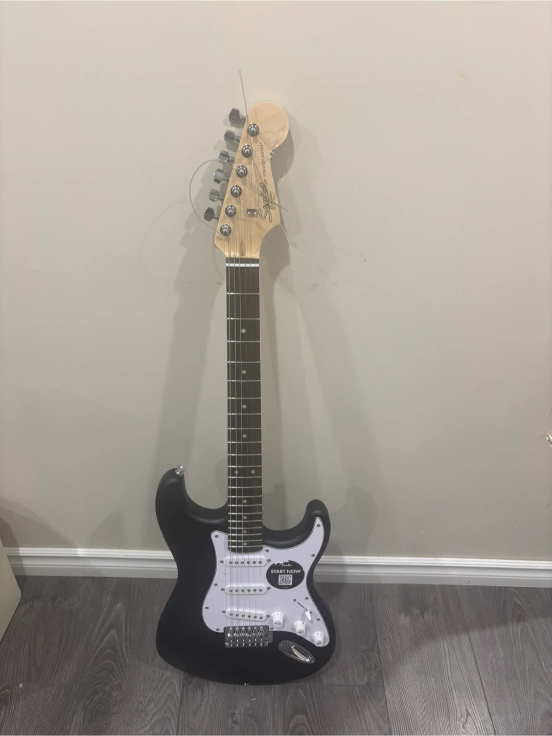 I'm selling a used Squier Stratocaster electric guitar, perfect for beginners or experienced players looking for a reliable instrument. This guitar is in good condition, ready to plug in and play.