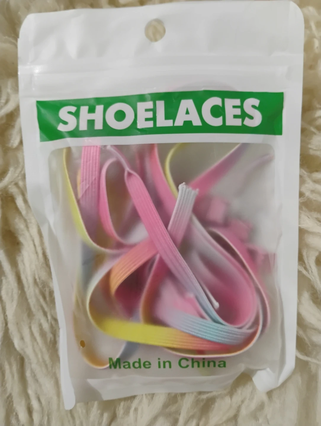 Brand new shoelaces with a cool tie-dye design. These laces are perfect for adding some flair to your sneakers or boots. They come in a convenient package for easy storage.