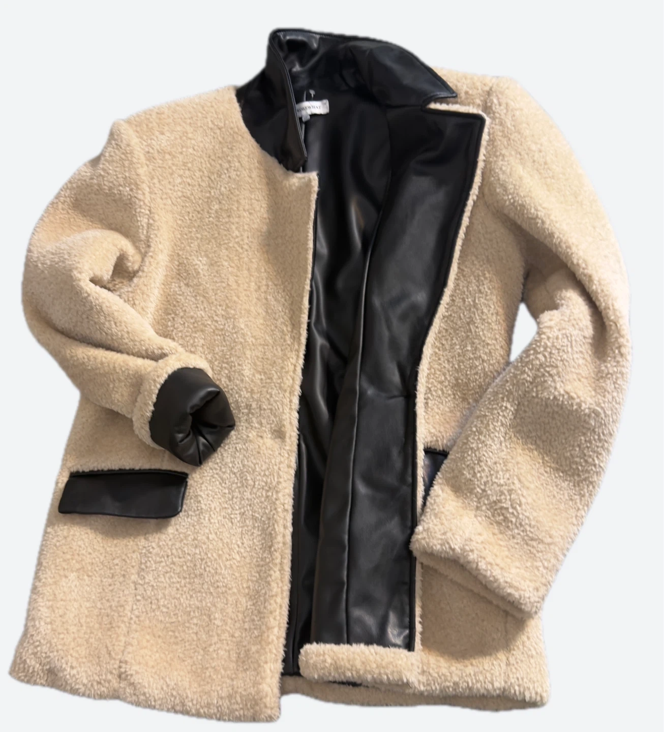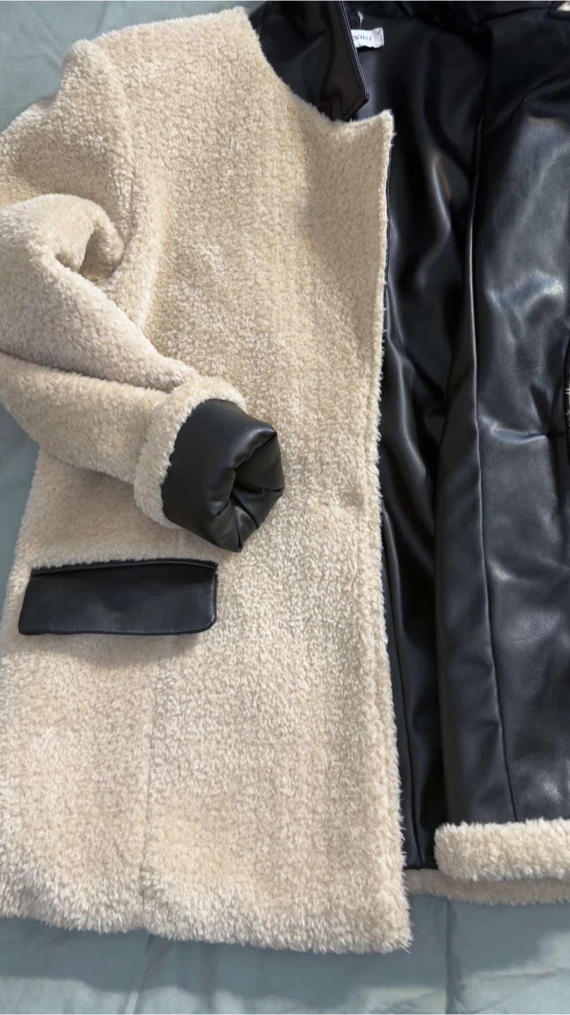 Buy & SellWomen's Cream & Black Teddy Coat Jacket M/MWomen's Cream & Black Teddy Coat Jacket M/M$39Cozy teddy coat with faux leather trim. Shell and lining are both 100% polyester. Includes a spare button. New without tagConditionNewSizeMBrandWEWOREWHATWHERE TO MEETCheck LocationView MapSELLERverifiedMAYDAHarlem19510 reviews1 chats·4 favorites·29 viewsSEND CHAT TO SELLERHi MAYDA! I’m interested in your listing.Hi MAYDA! I’m interested in your listing.Get the Karrot app to chatSign In to chat