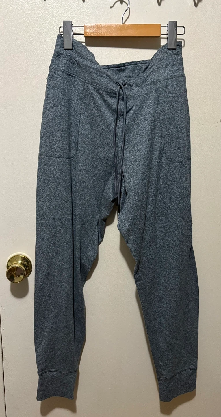 Cozy grey jogger pants from Lolë, perfect for relaxing at home or a casual outing. These are a size medium and in excellent condition! They feature a comfortable drawstring waist. Barely used. ➡️Size M on label but i think best fits to L.