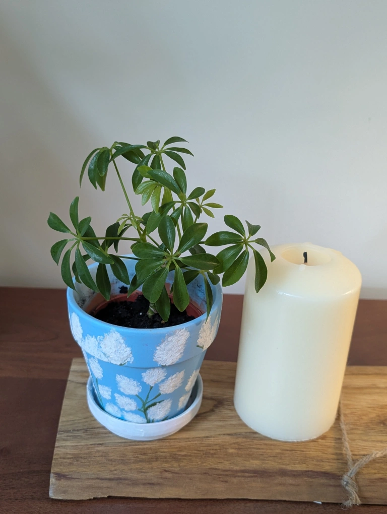 Umbrella plant (Schefflera) in Handpainted terra cotta pot