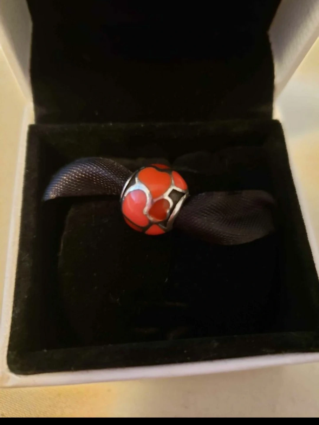 This is a Pandora charm with a red enamel and silver heart design. It comes in its original Pandora box. This charm adds a touch of colour to any bracelet! Retired.