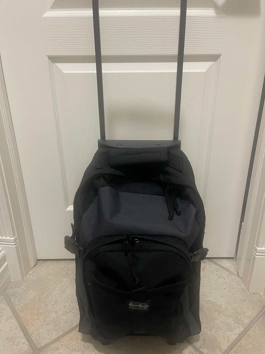 REDUCED again to 65.00 from 95.00!!! - great buy! Selling the top rated black EDDIE BAUER rolling backpack! It's in great shape (barely used) and ready for a new home. Perfect for travel or school or sports. Has many compartments - some with zippers. Have 3 choices to carry - HAS a telescopic handle for rolling OR can carry it by a strap/loop OR can use it as a back pack with padded straps that can be covered when not in use. SIZE - 22” high x 15” wide x 7” front to back. Has 2 wheels and 2 feet. Not sure of regular price but Eddie Bauer rolling backpacks seem to sell between 100.00 - 400.00. Asking 95.00 - now 79.00 - now 65.00!