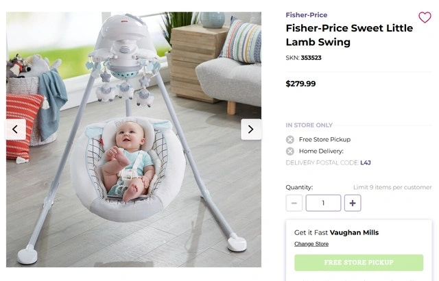 Original Fisher-Price Sweet Little Lamb Swing, gently used and very well maintained.