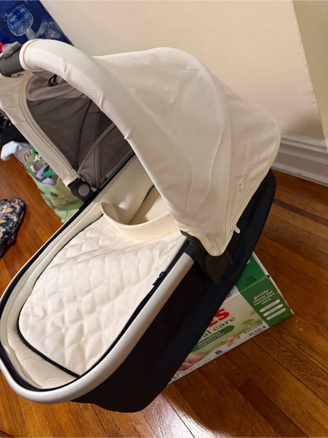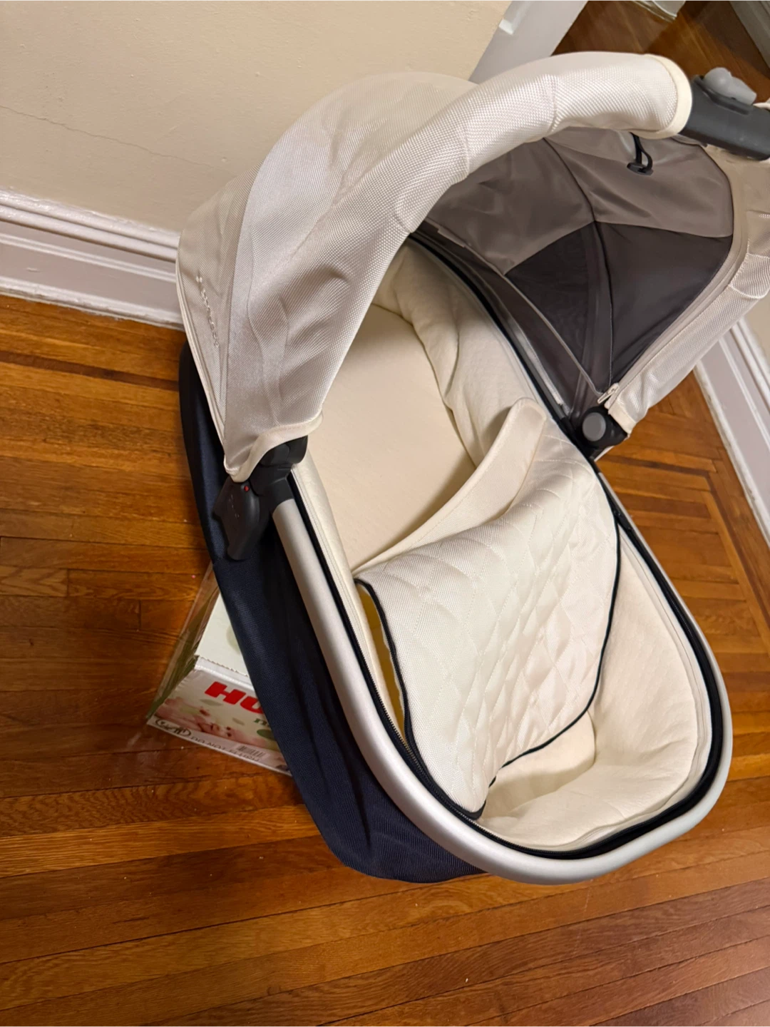 Selling a gently used UPPAbaby bassinet in excellent condition! It's perfect for newborns and infants. The bassinet features a comfortable mattress and a ventilated base for breathability. It's compatible with UPPAbaby strollers for easy transport. The color is a stylish combination of cream and black. I have rain cover and mosquito net as well