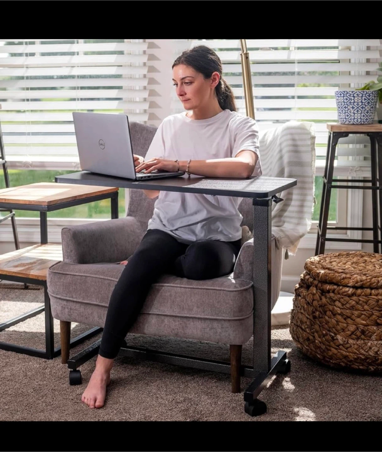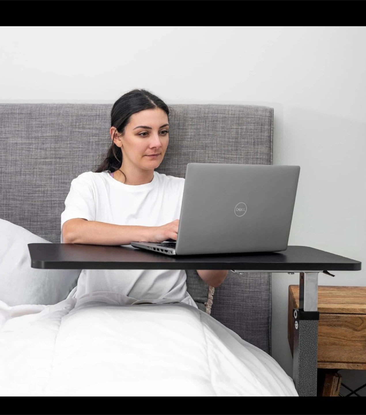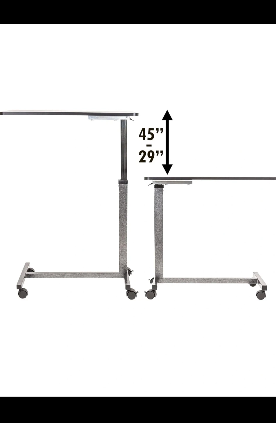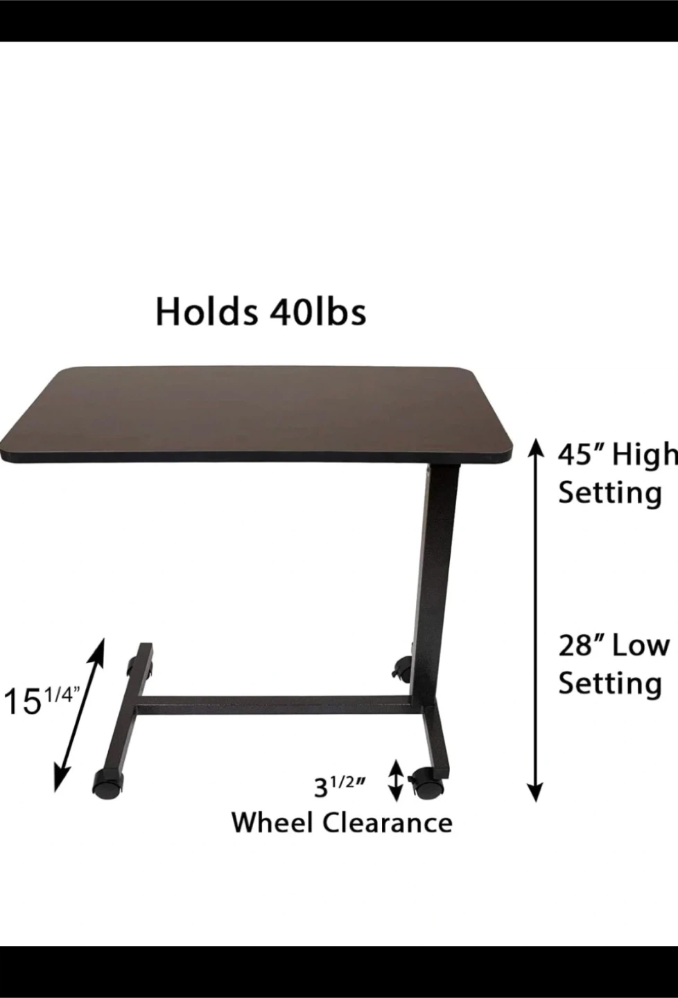 This Roscoe Medical non-tilt overbed table with wheels is perfect for using a laptop in bed or eating. It's adjustable from 28" to 45" in height, and the table top is 15 x 30 inches. It can hold up to 40lbs. Perfect condition. Does not come with power bar on the side. Cash only