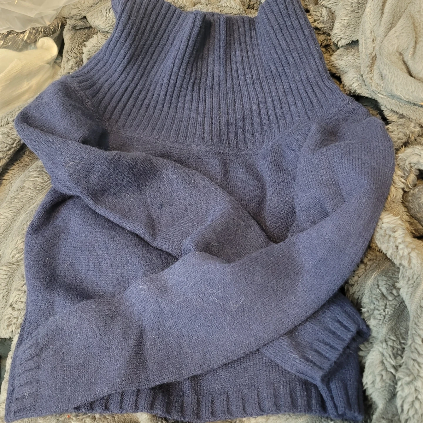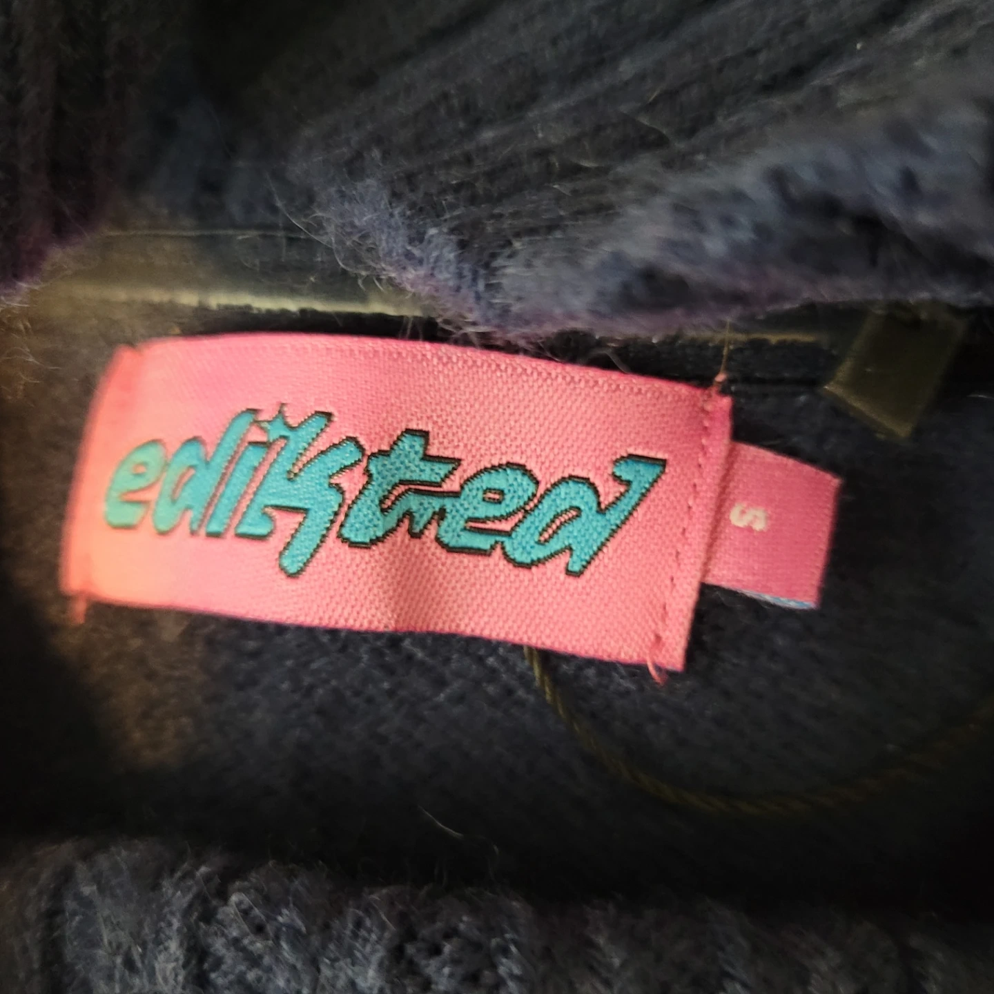 This Edikted pullover sweater is a size small. It's a dark navy colour. Small snags noted on the fabric.