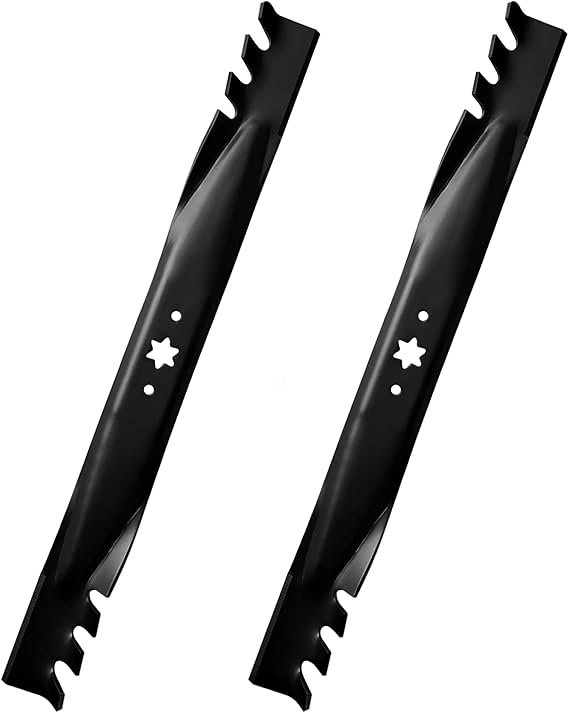 Get your lawn mower ready for a perfect cut with this brand new, open-box set of two toothed mulching blades! These high-performance blades are made from durable steel and are compatible with popular brands like Craftsman, Cub Cadet, Troy-Bilt, and MTD. An ideal replacement or upgrade to get a cleaner, more efficient mulch.