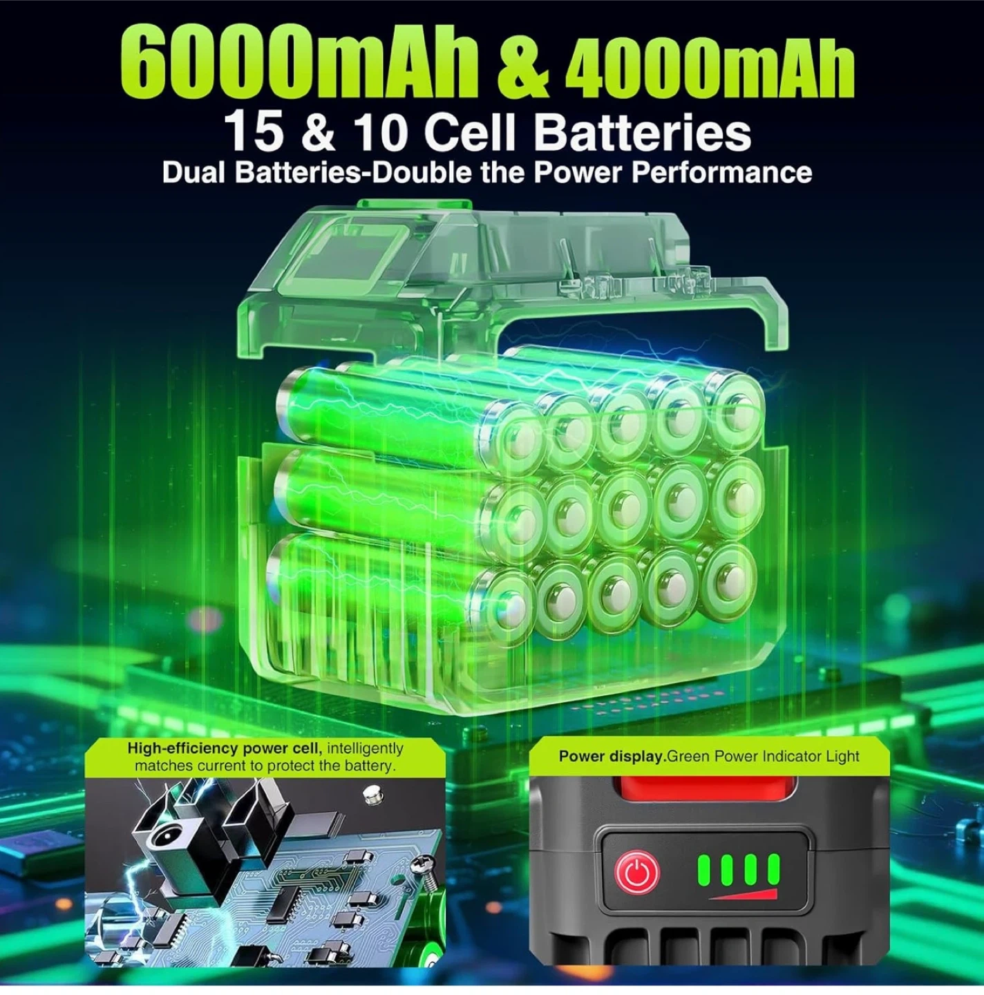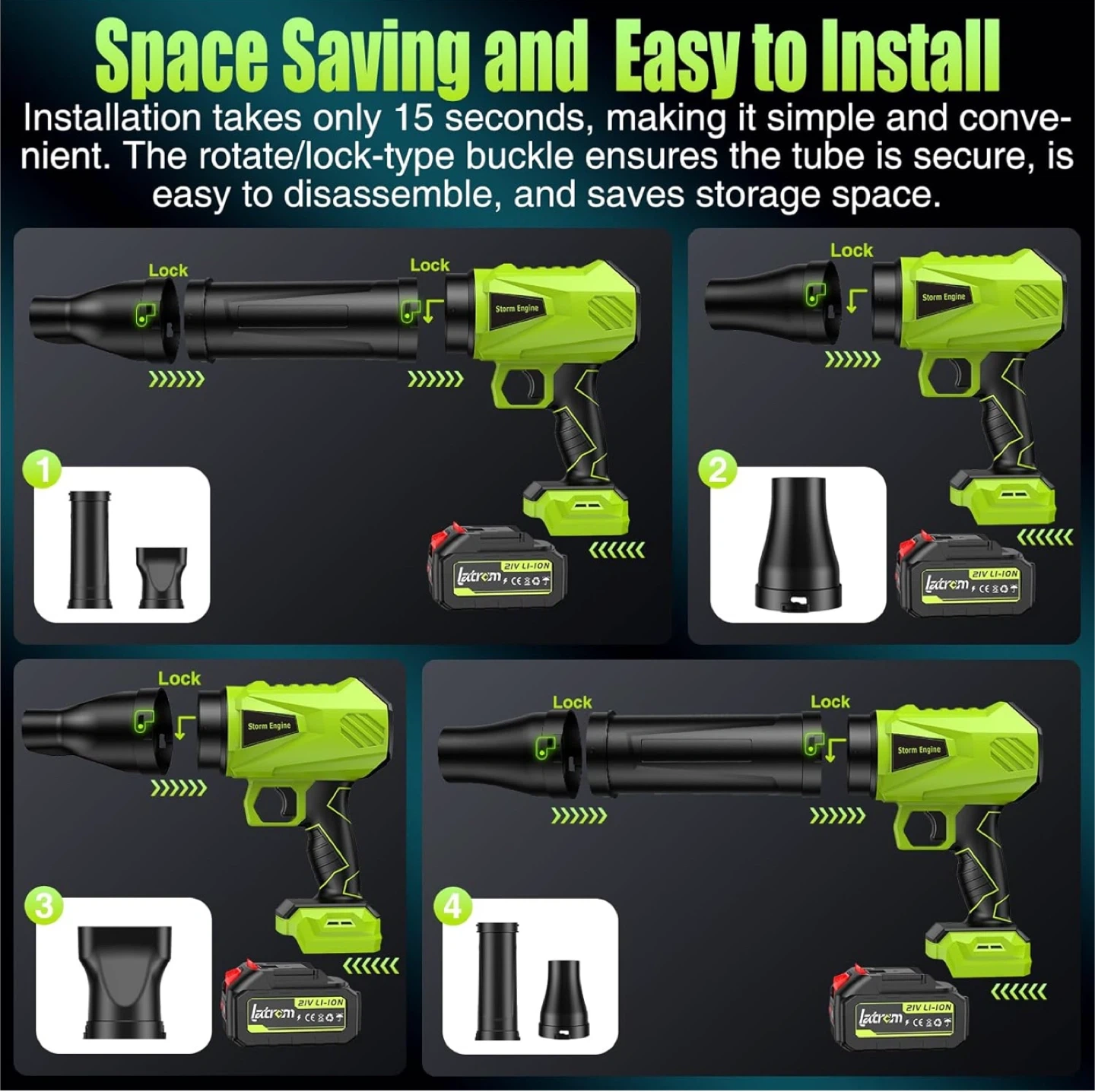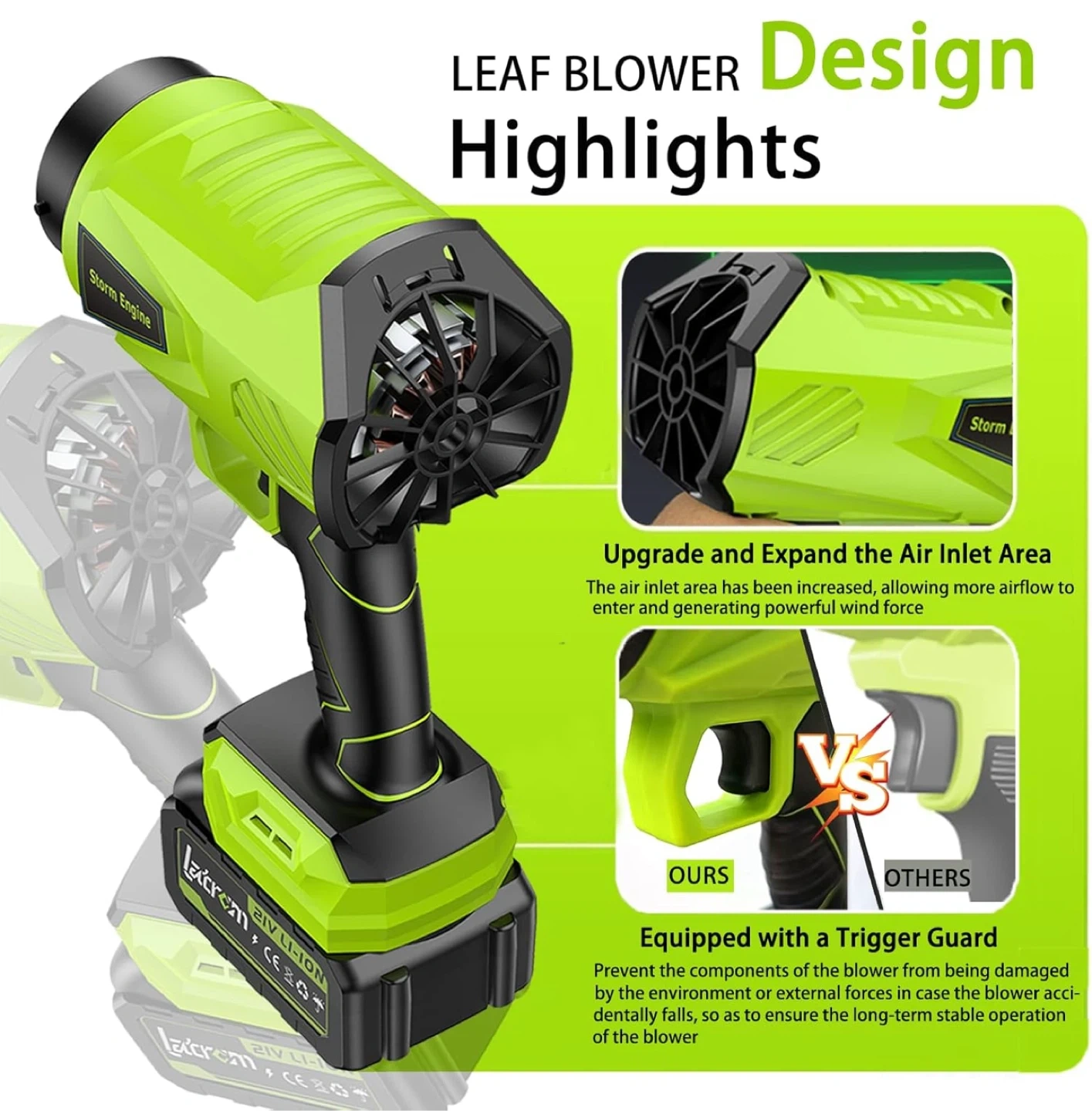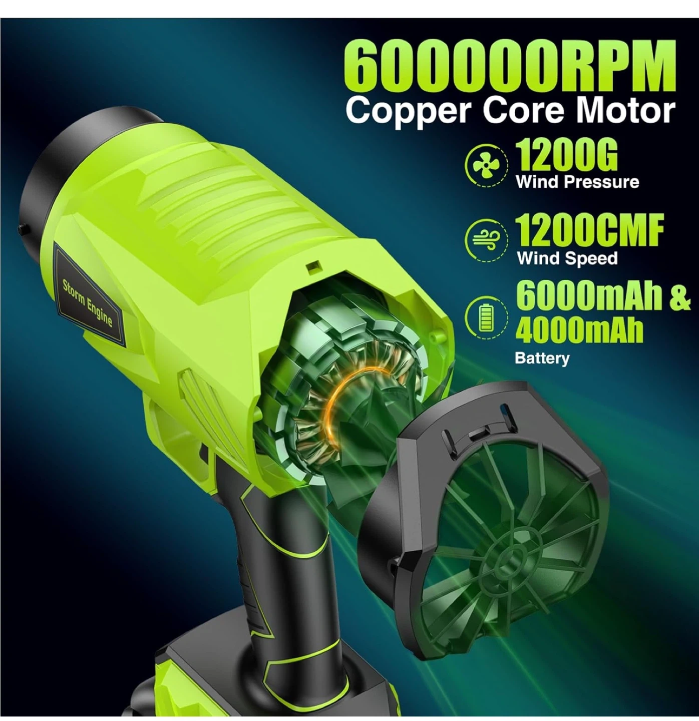 Leaf Blower Cordless with Battery and Charger 600,000 RPM Handheld Lightweight Patio Cleaning Blower Set Extended Nozzle Design Blowing Leaves and Dust Car Dryer (Green)