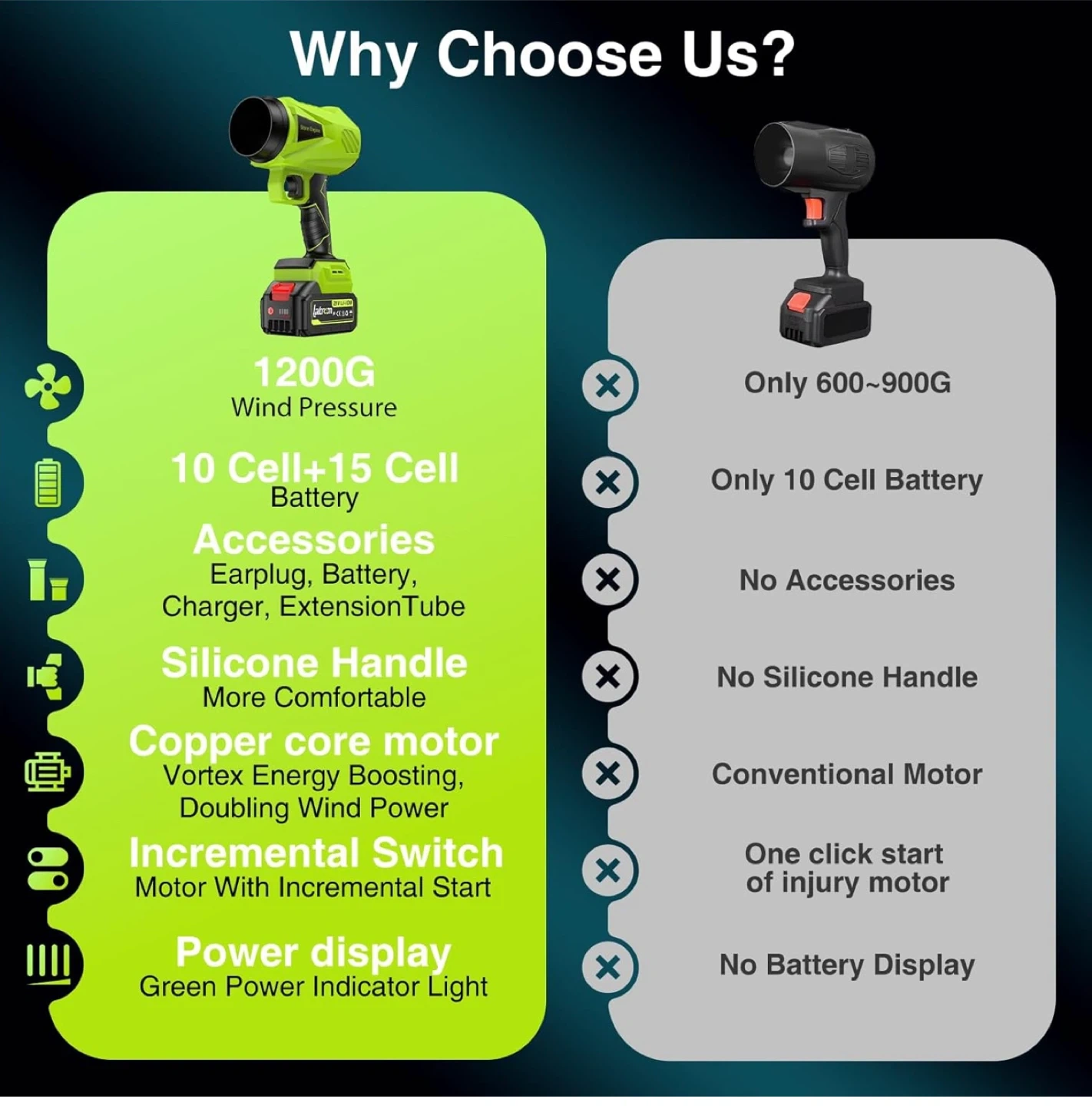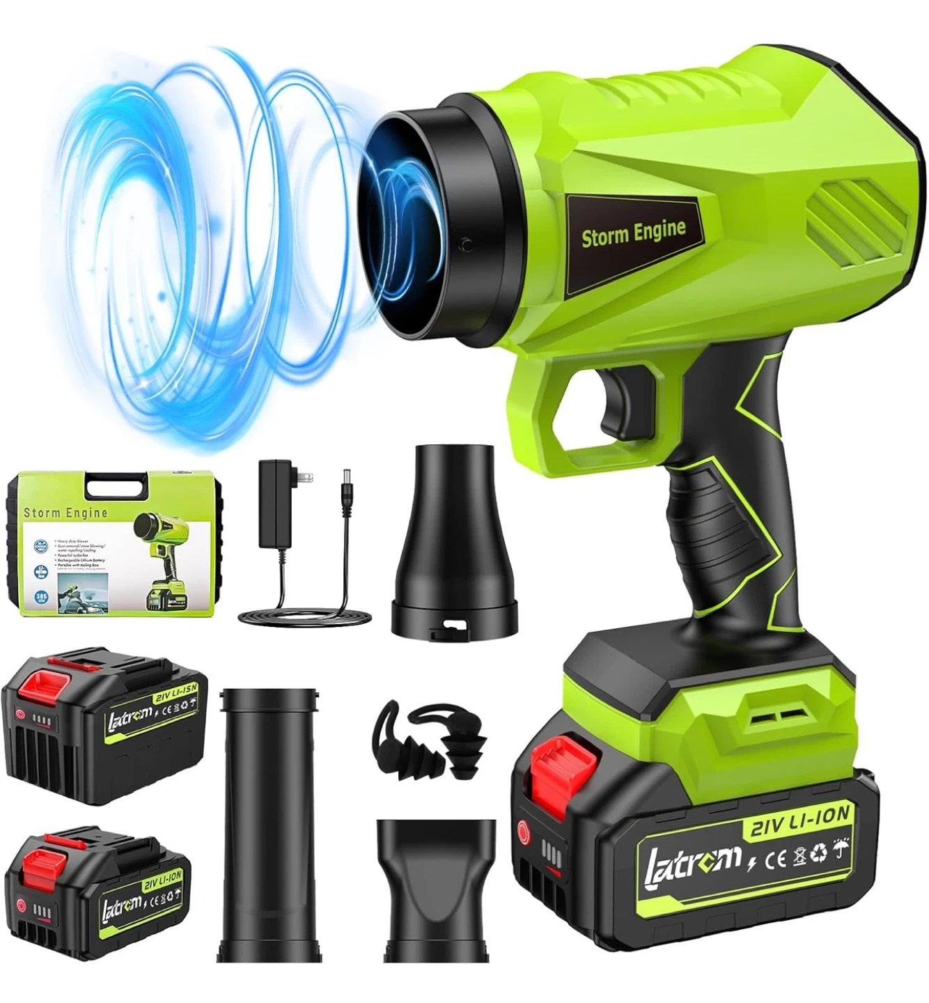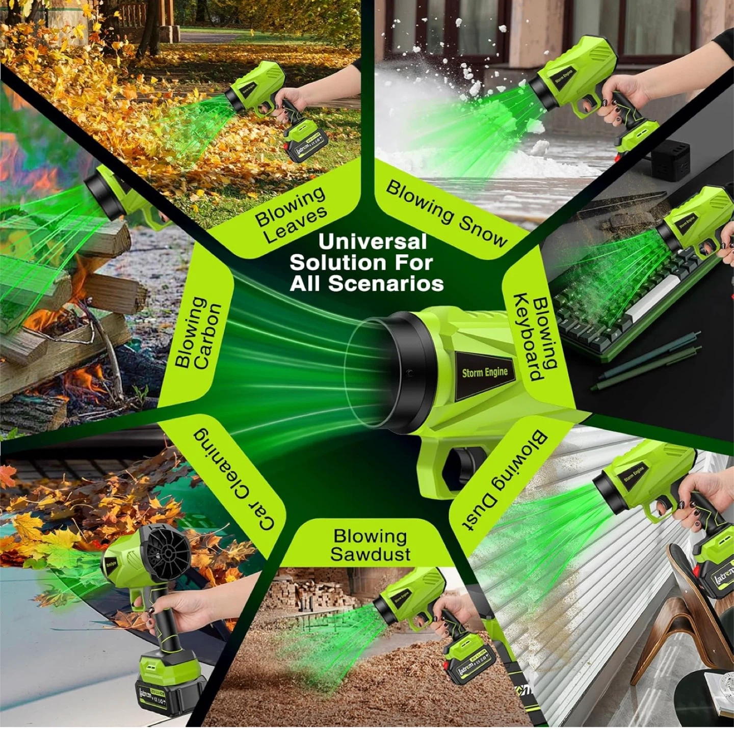 Leaf Blower Cordless with Battery and Charger 600,000 RPM Handheld Lightweight Patio Cleaning Blower Set Extended Nozzle Design Blowing Leaves and Dust Car Dryer (Green)