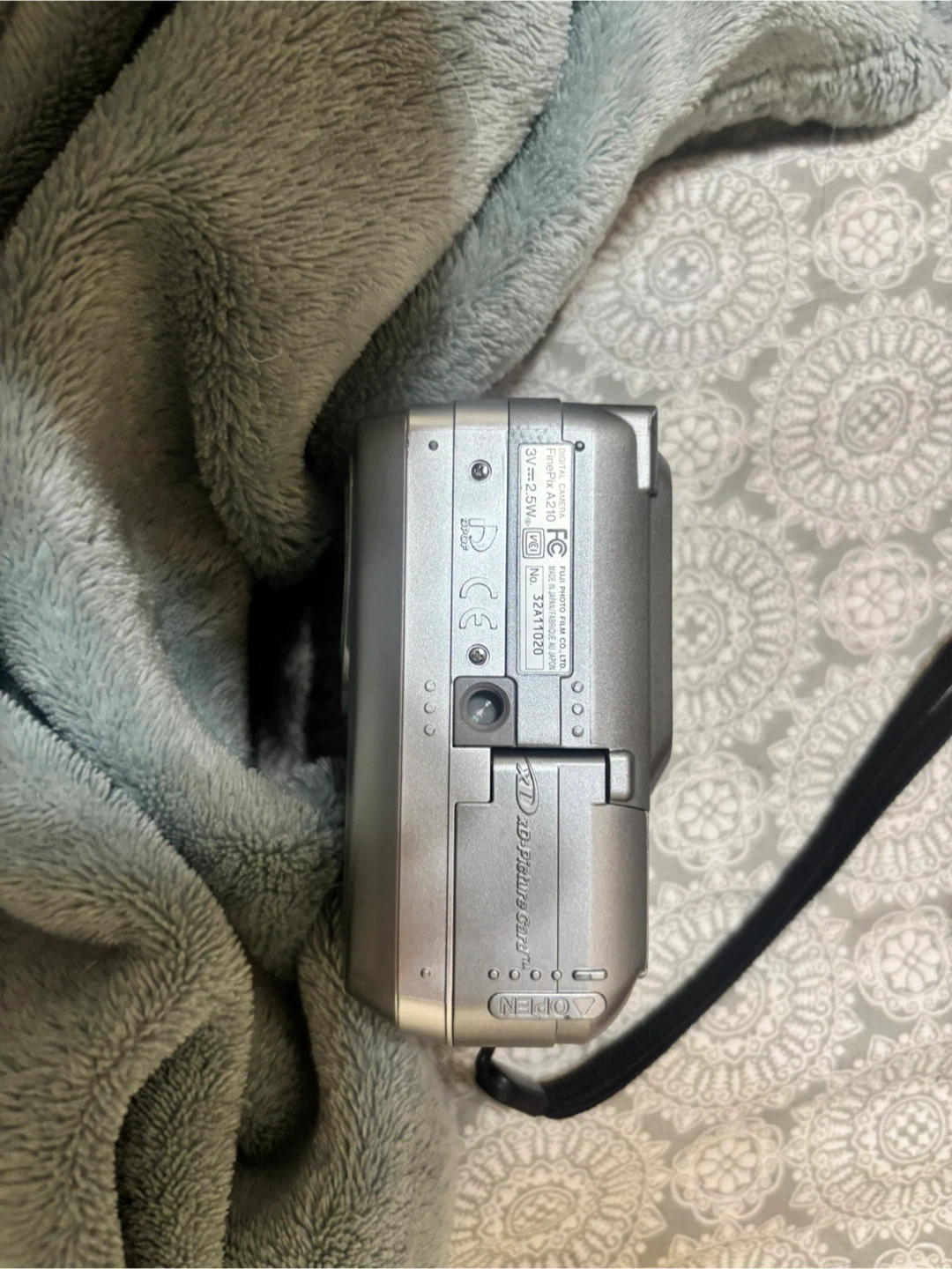 Silver Fujifilm FinePix A210 digital camera. It features 3.2 effective megapixels. This camera uses XD Picture Cards.