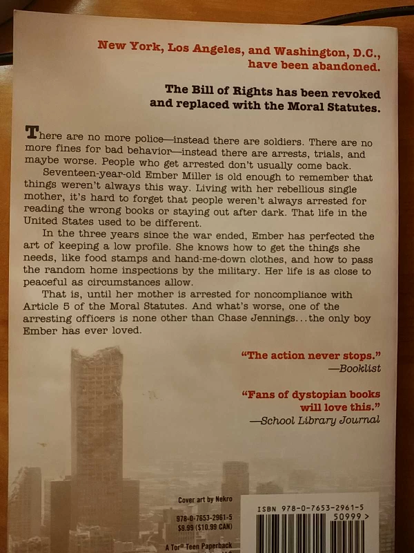 Selling a copy of Article 5 by Kristen Simmons. It's a dystopian novel that's part of a series. If you're a fan of dystopian books, you might enjoy this one