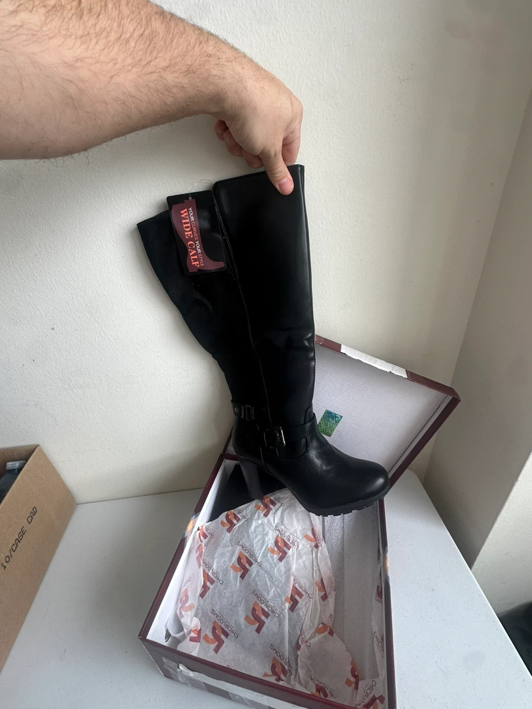 Selling a pair of Shoe Dazzle black knee-high boots in size 7. These boots are in great condition and come with the original box. Perfect for adding a stylish touch to your wardrobe!
