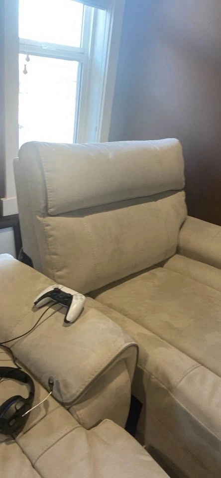 Super clean sofas from a smoke-free home. Bought for $1600 last year, looking to sell for $400 each. Little scratches on the USB spots, but they can likely be removed with rubbing alcohol. Features automatic recliner for back and forward movement. I steam wash them about once a month to keep them clean. No bad spots on the sofas at all!